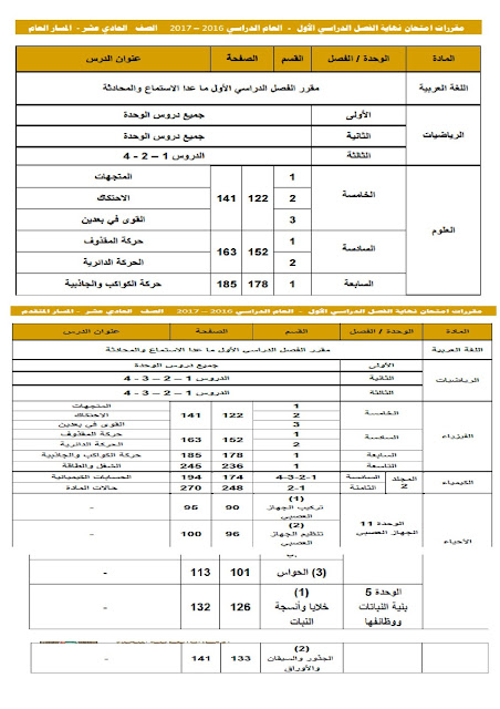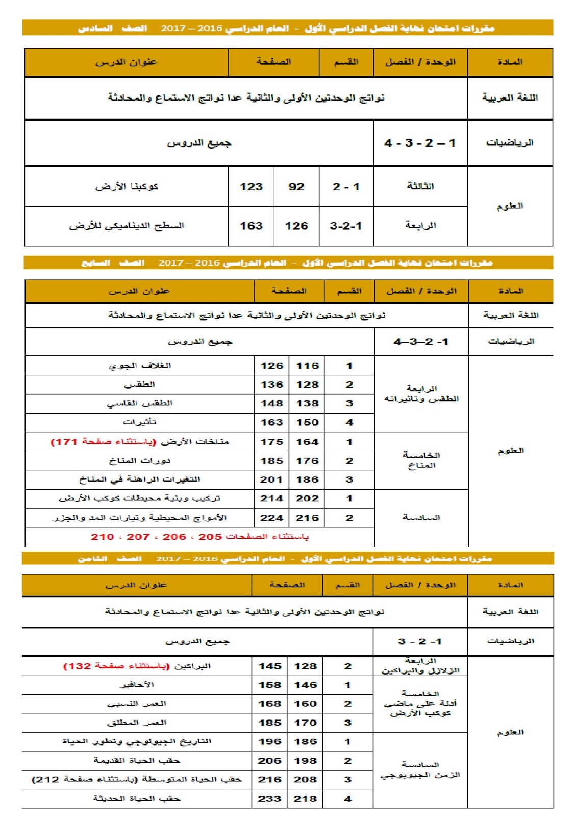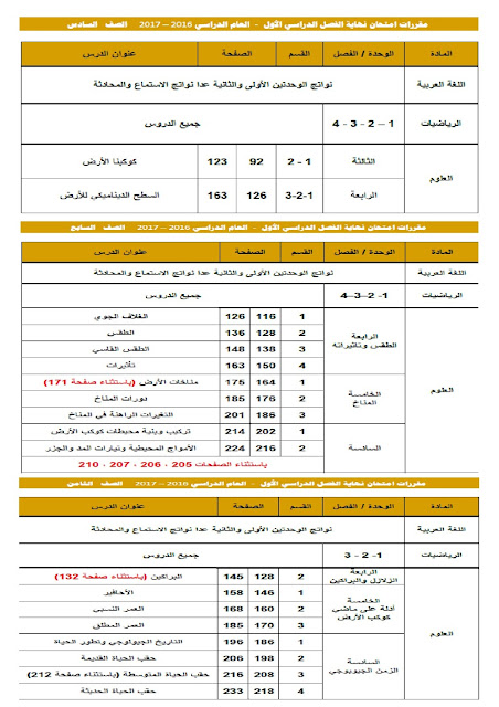 الفصل الأولمقررات جميع المواد للصفوف من السادس حتى الحادي | ||