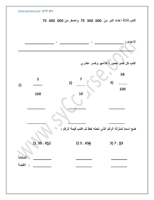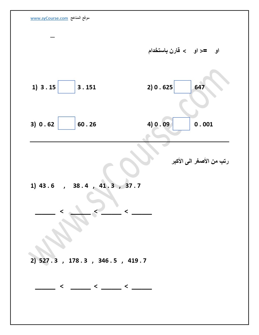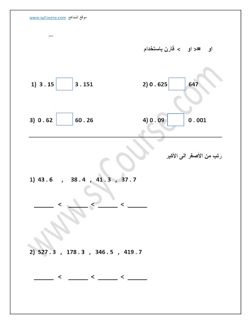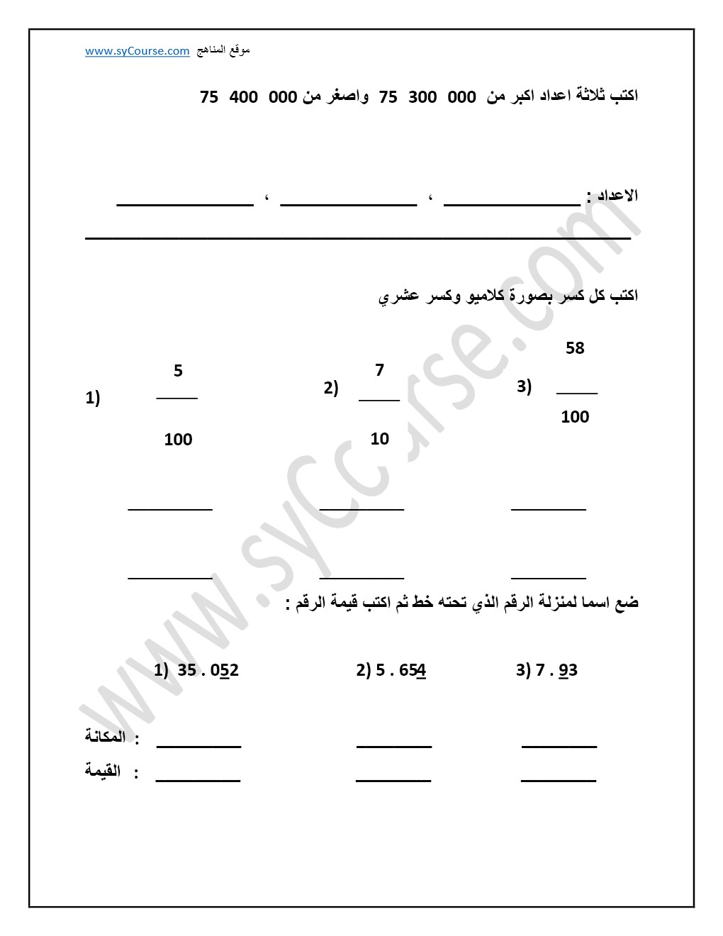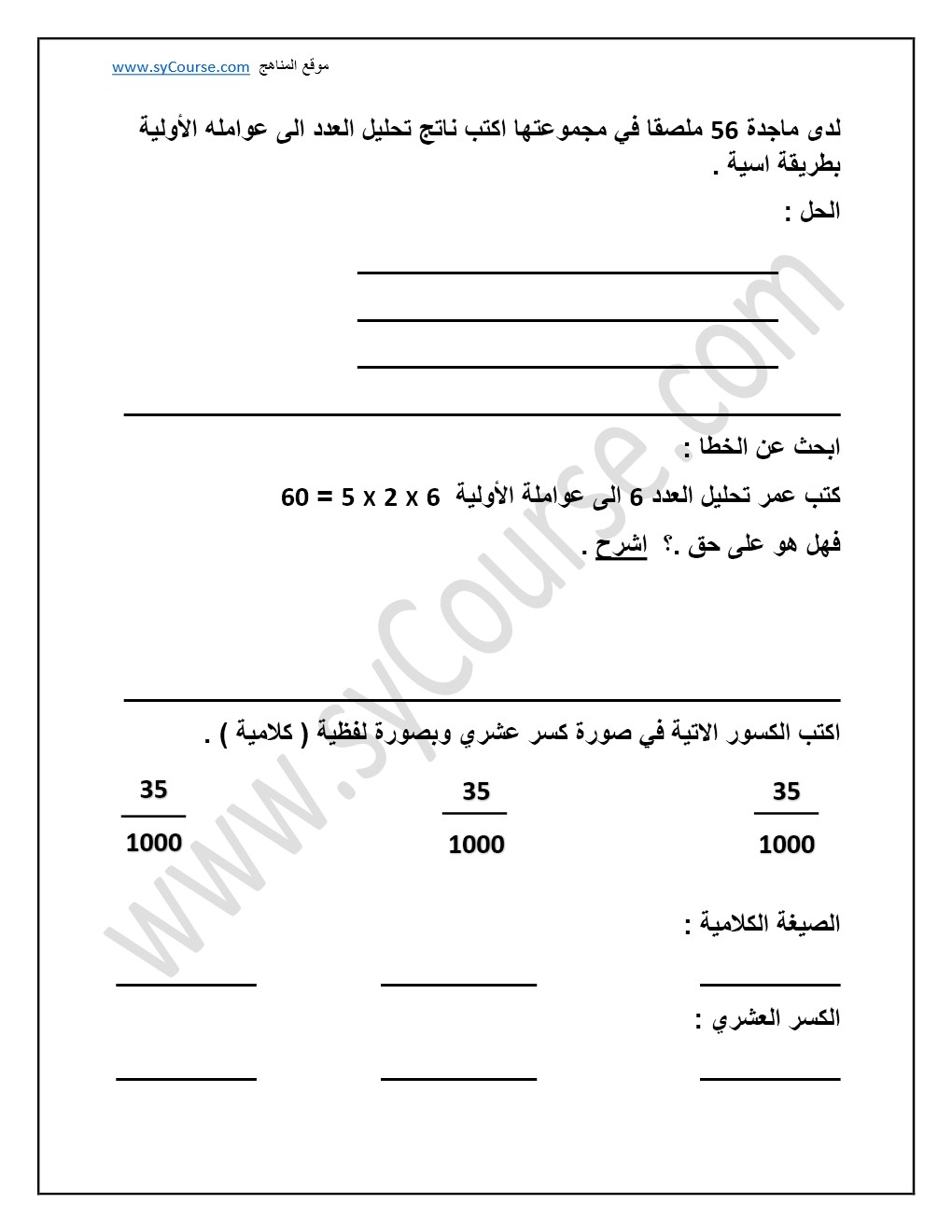 الصف الخامس, الفصل الأول, رياضيات, مذكرة 2016-2017