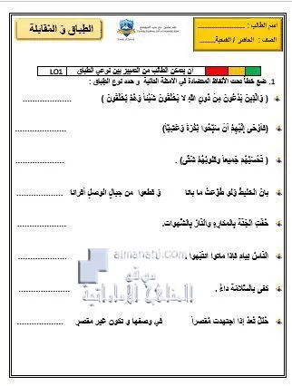 تم إيجاد الملف: ورقة عمل درس الطباق والمقابلة