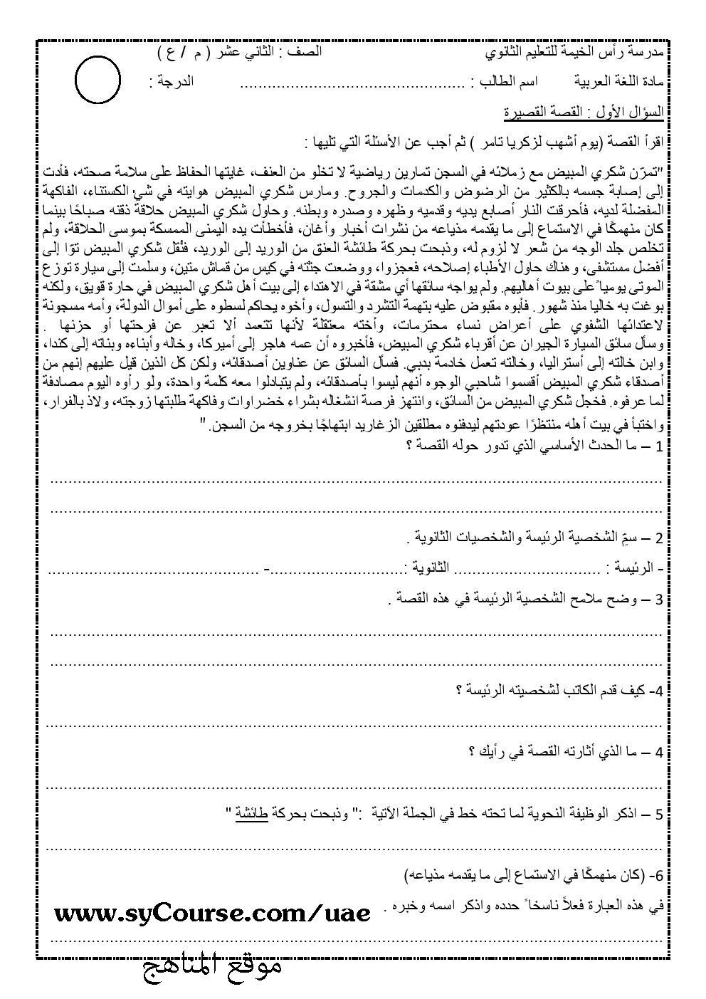 معلومات الملف: الصف الثاني عشر, الفصل الأول, لغة عربية,نموذجامتحاني 2016-2017 | ||