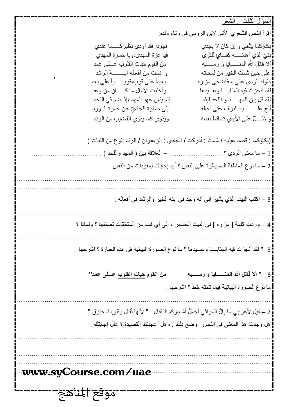 أنت هنا: موقع المناهج ⇦ المناهج الإماراتية ⇦ الصف الثاني عشر ⇦ لغة عربية ⇦ الفصل الأول ⇦ الامتحان النهائي |