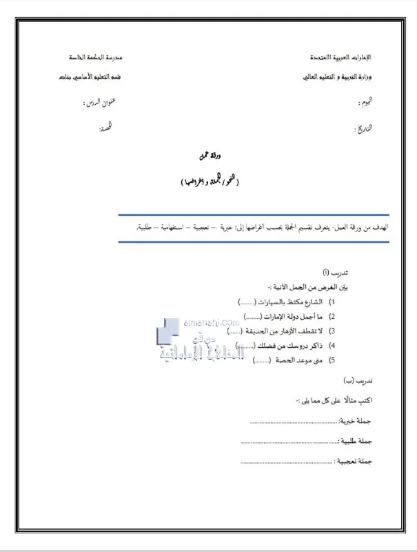تم إيجاد الملف: ورقة عمل نحو الجملة وأغراضها