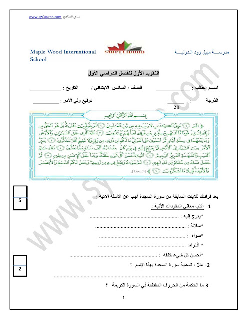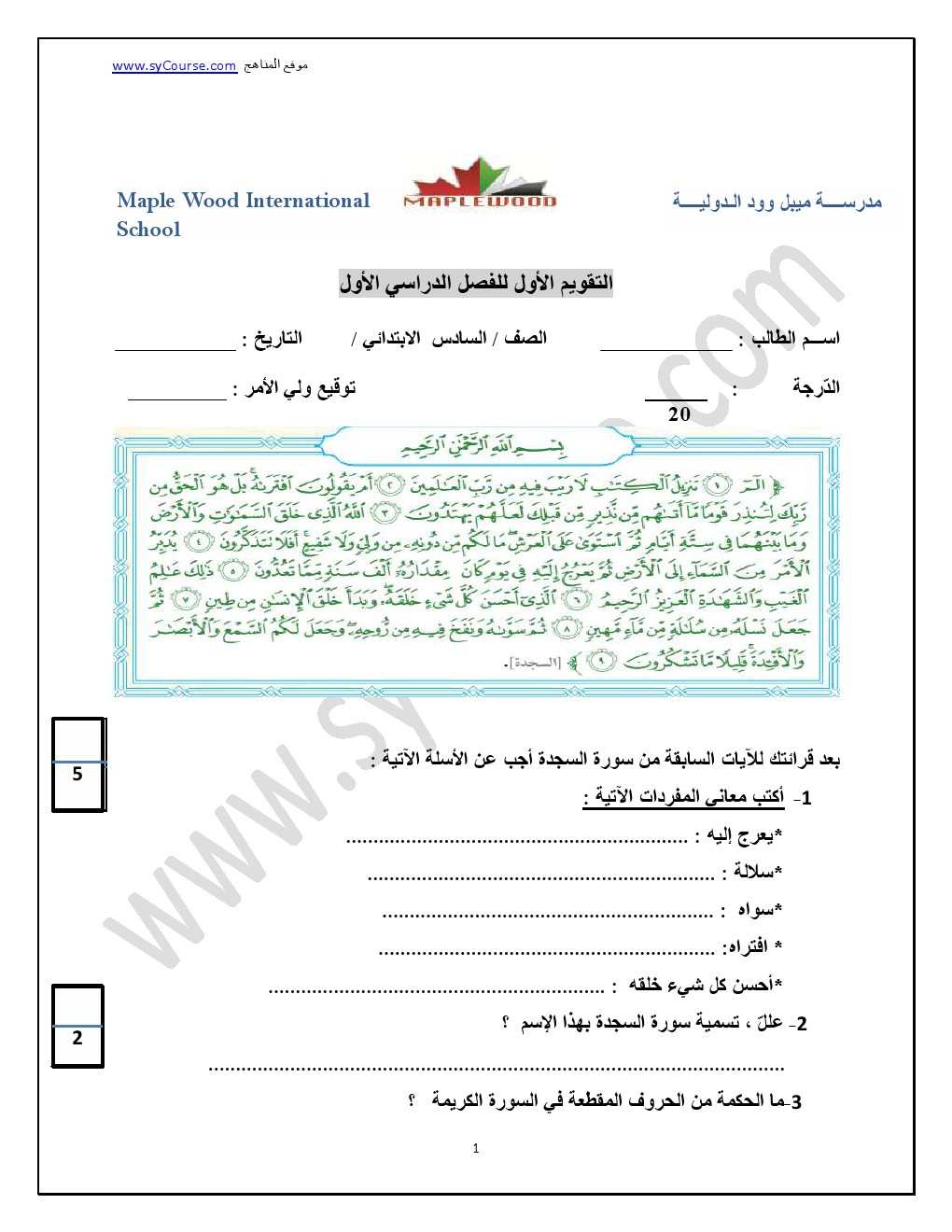 معلومات الملف: الصف السادس, الفصل الأول, تربية اسلامية, تقويم الفصل الأول من العام الدراسي 2016-2017 | ||