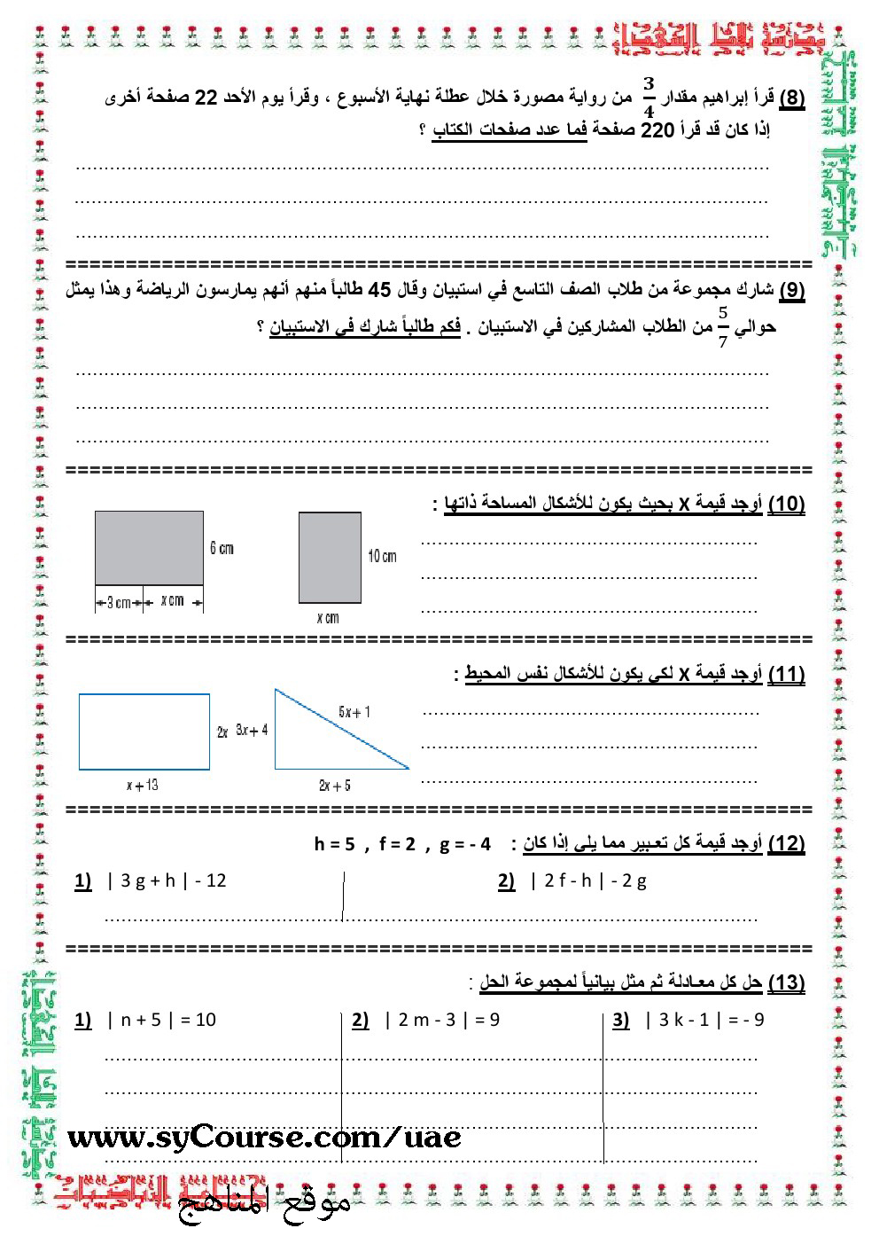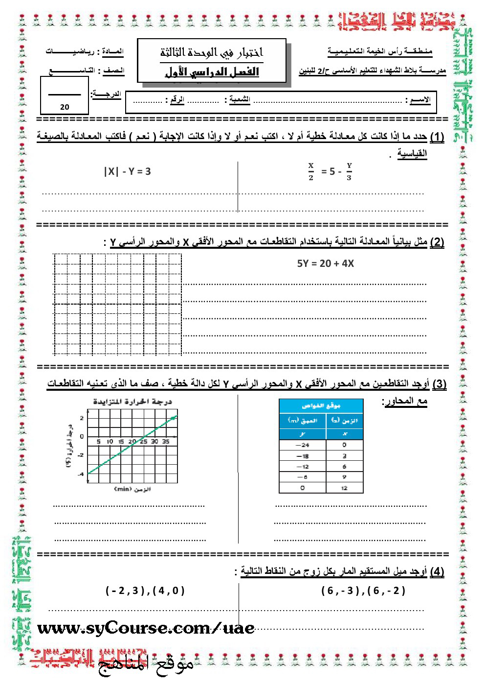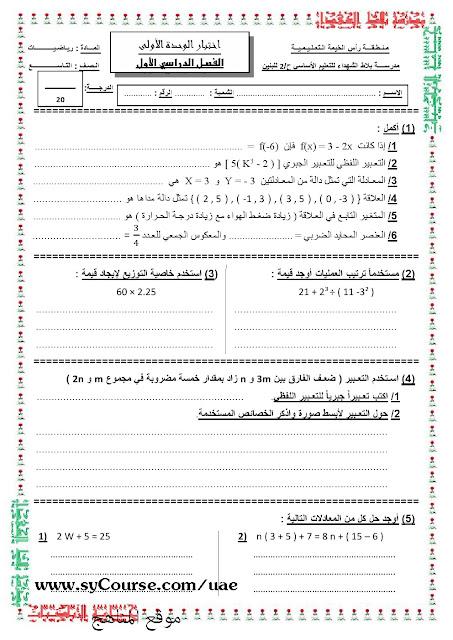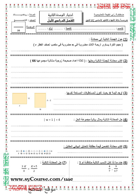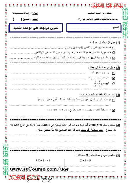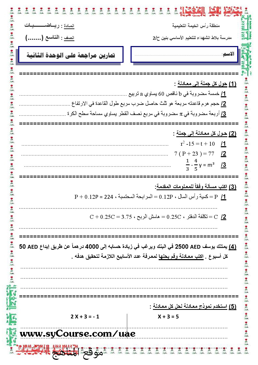 الصف التاسع, الفصل الأول, رياضيات , 2017-2018 مراجعة قبل الامتحان |