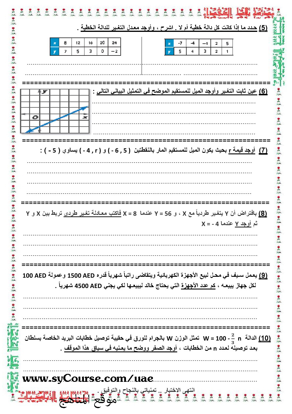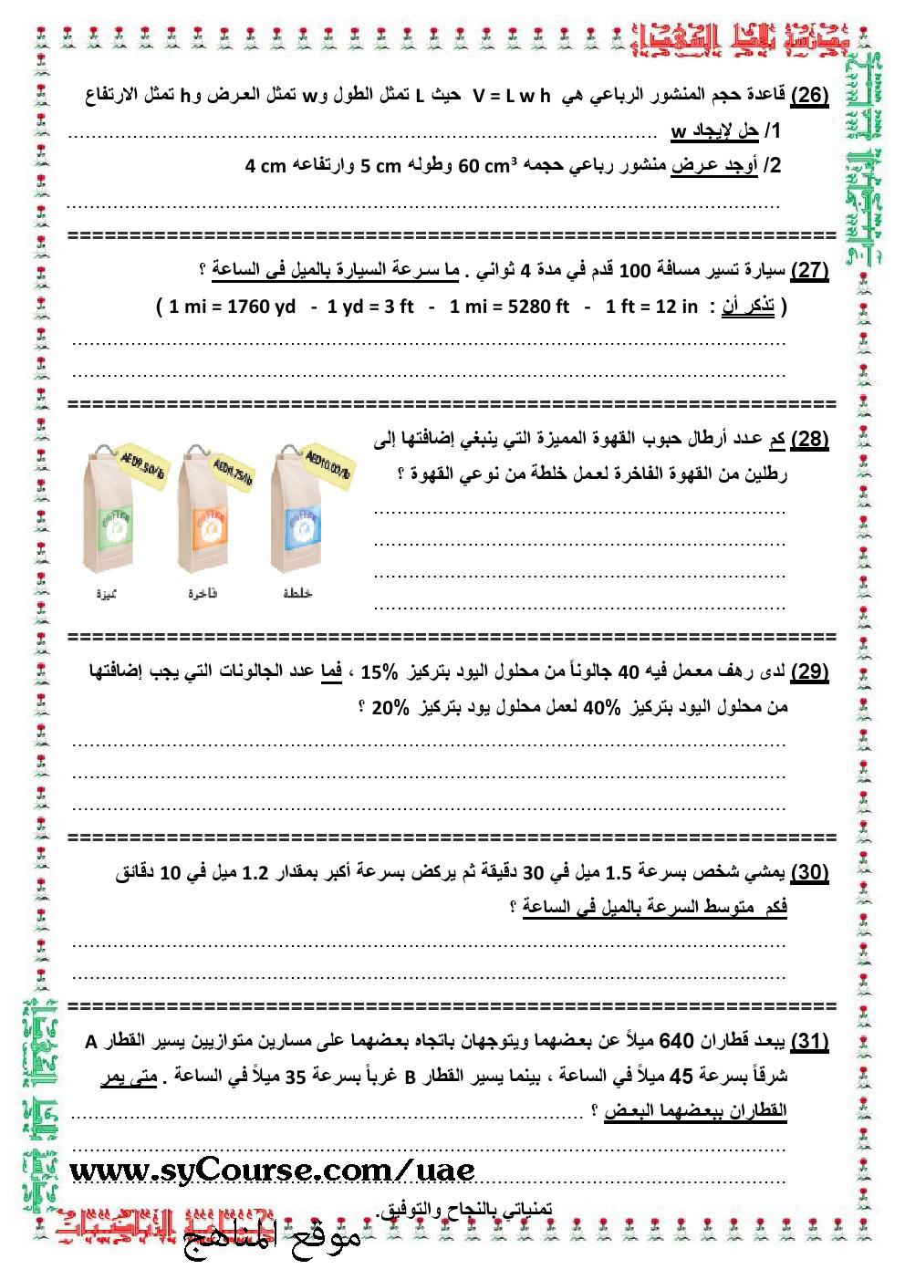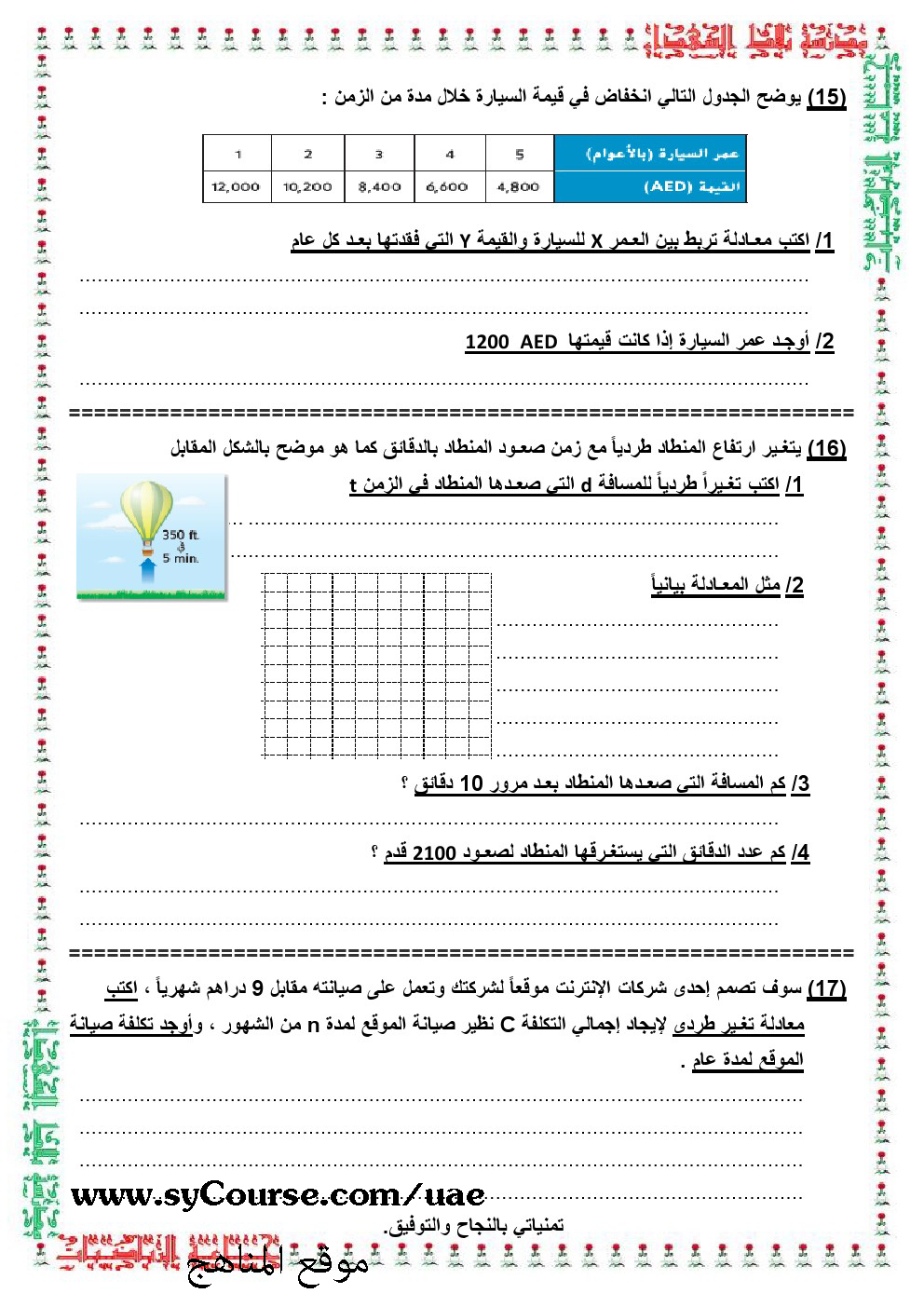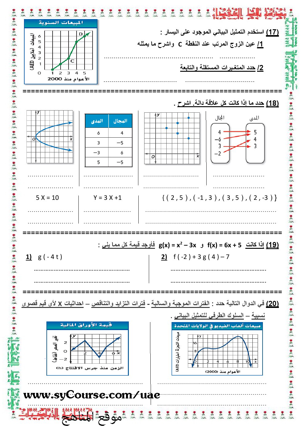 الصف التاسع, الفصل الأول, رياضيات , 2017-2018 مراجعة قبل الامتحان |
