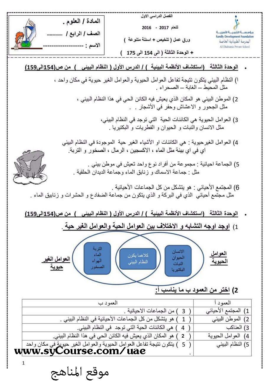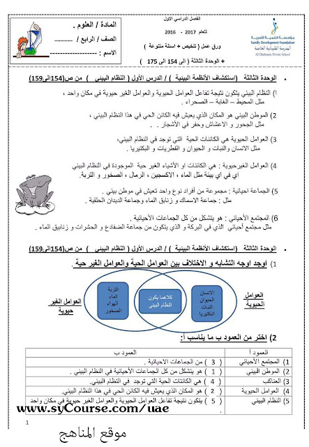 معلومات الملف: الصف الرابع. الفصل الأول, علوم, أسئلة تدريبية ونماذج أسئلة شاملة 2016-2017 | ||