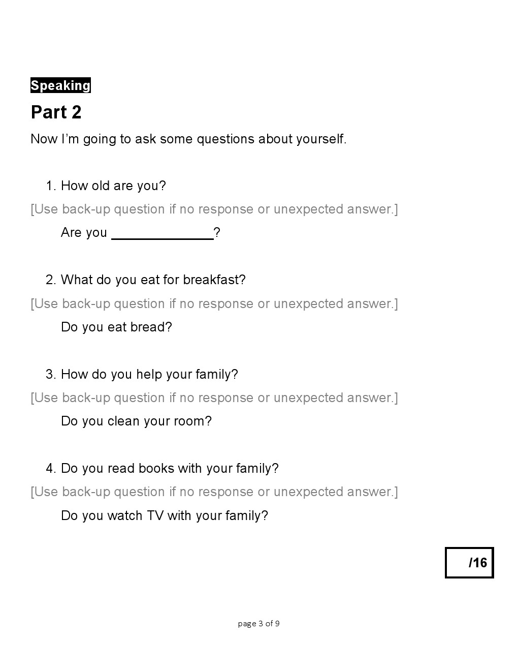 معلومات الملف: الصف الثاني, الفصل الأول, لغة انكليزية, اسئلة اختبار Speaking | ||