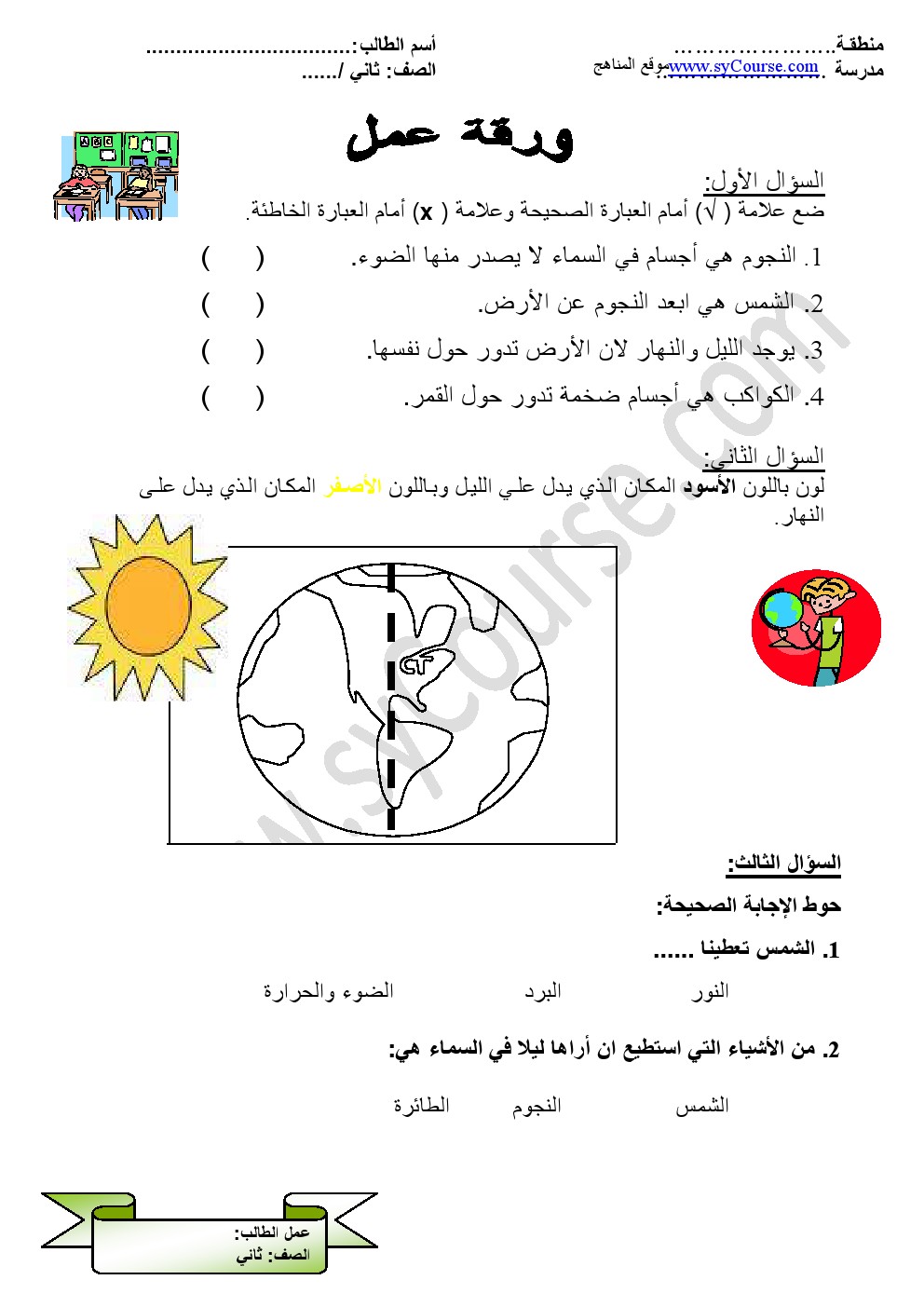 ورقة عمل عن النجوم | ||
