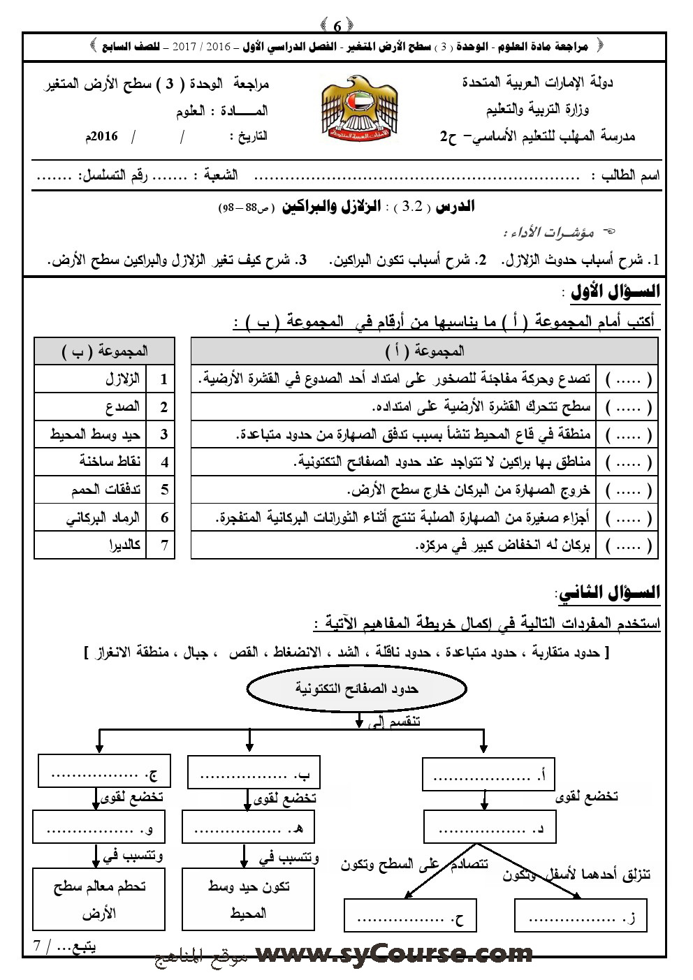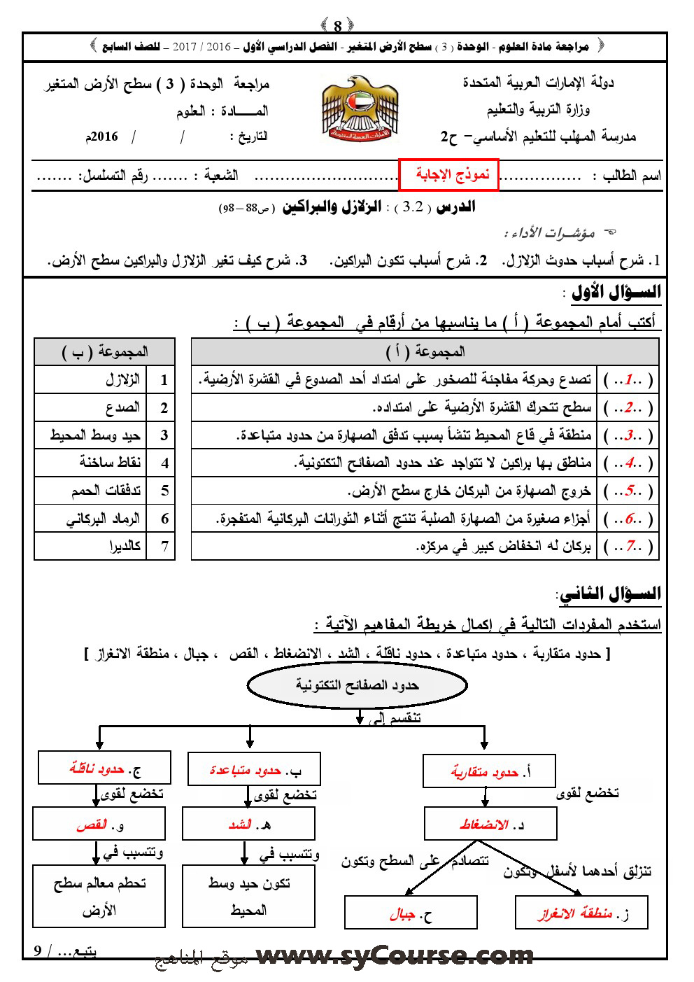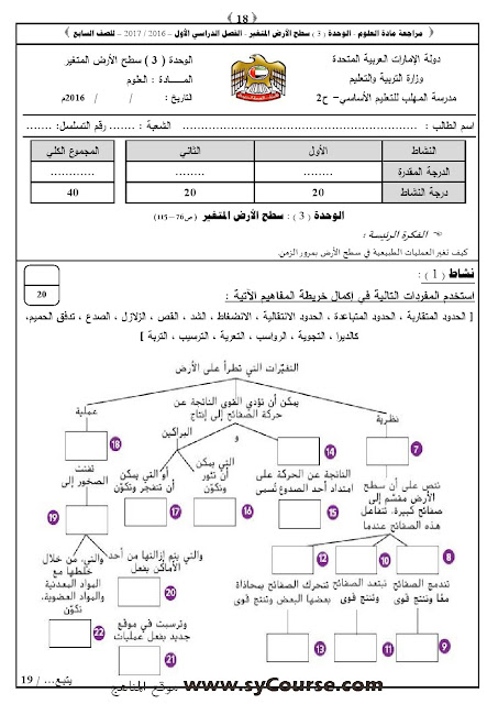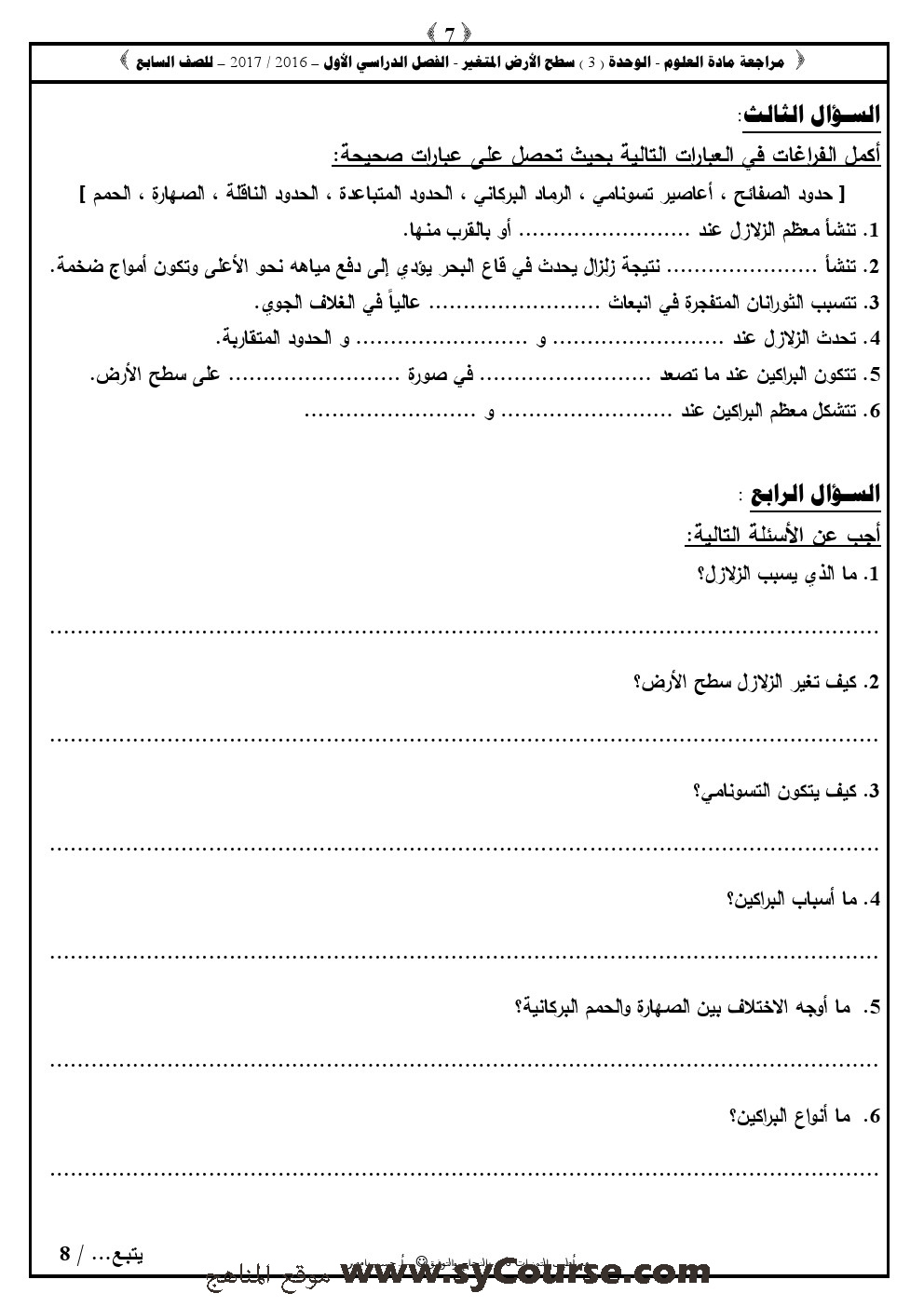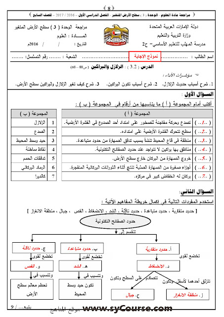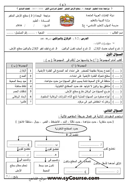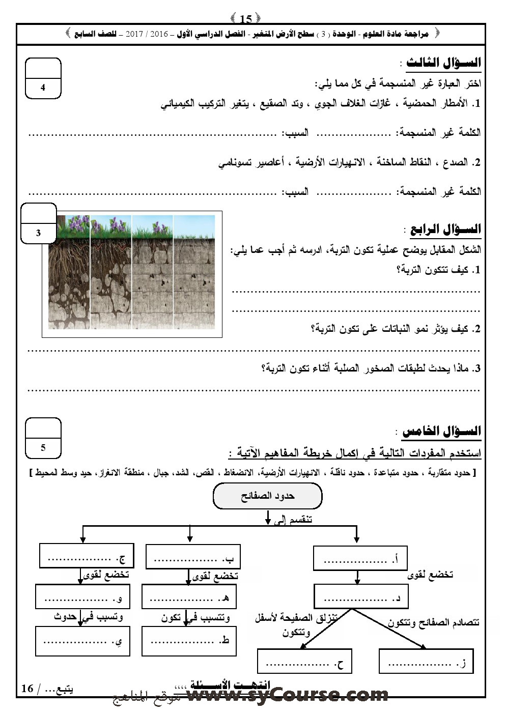 معلومات الملف: الصف السابع, الفصل الأول, علوم, مراجعة نهائية 2016-2017 | ||