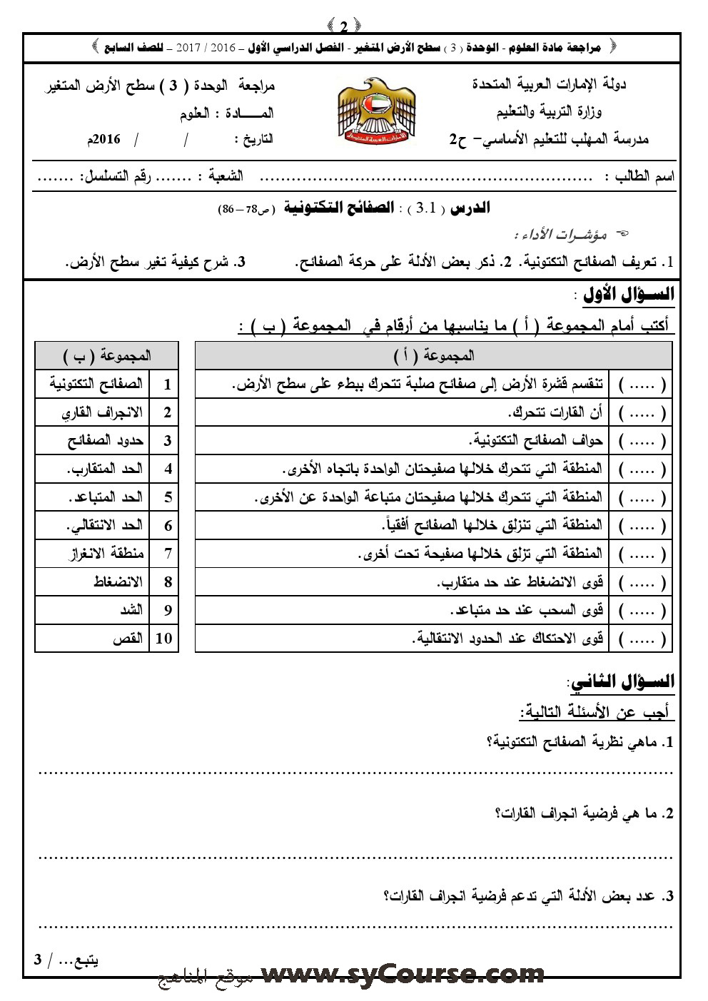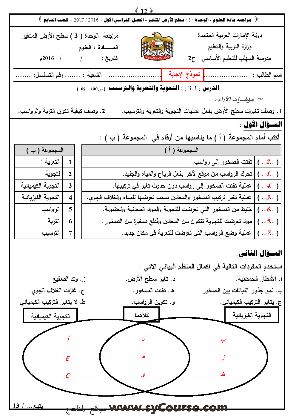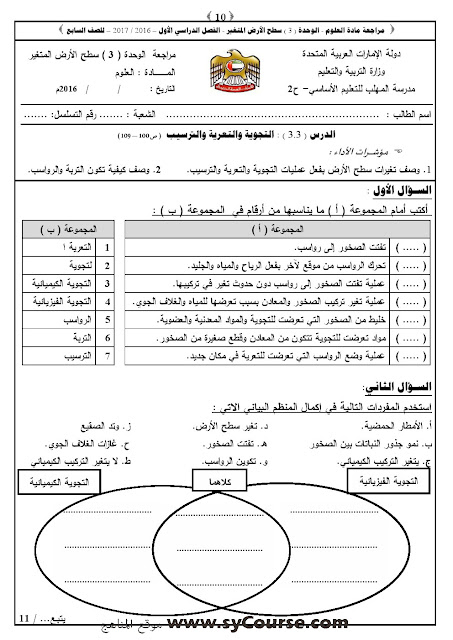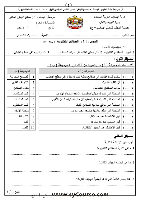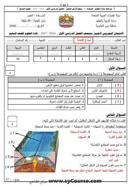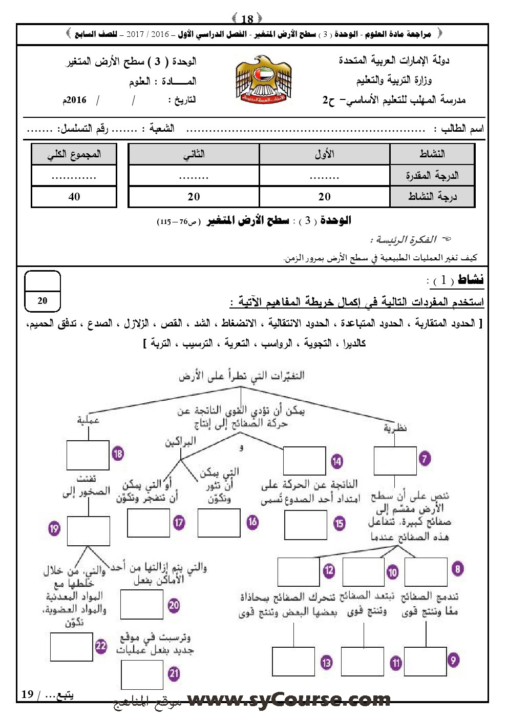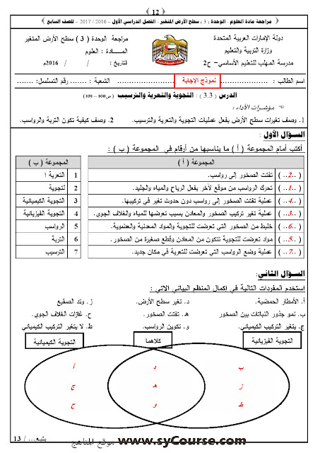 معلومات الملف: الصف السابع, الفصل الأول, علوم, مراجعة نهائية 2016-2017 | ||