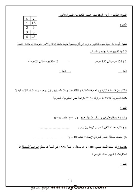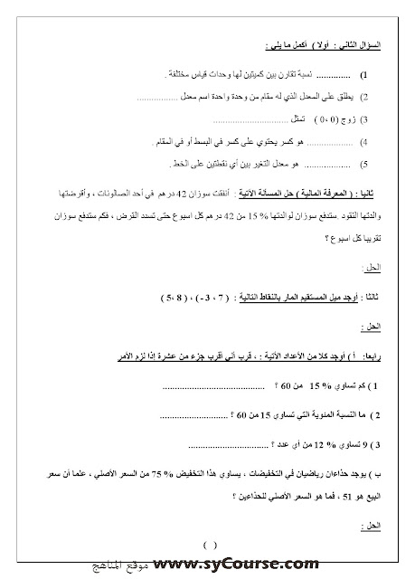 9. رياضيات, الفصل الأول, 2025-2026, حل اختبار الدروس الثلاثة الأولى من الوحدة الثانية منهج ريفيل