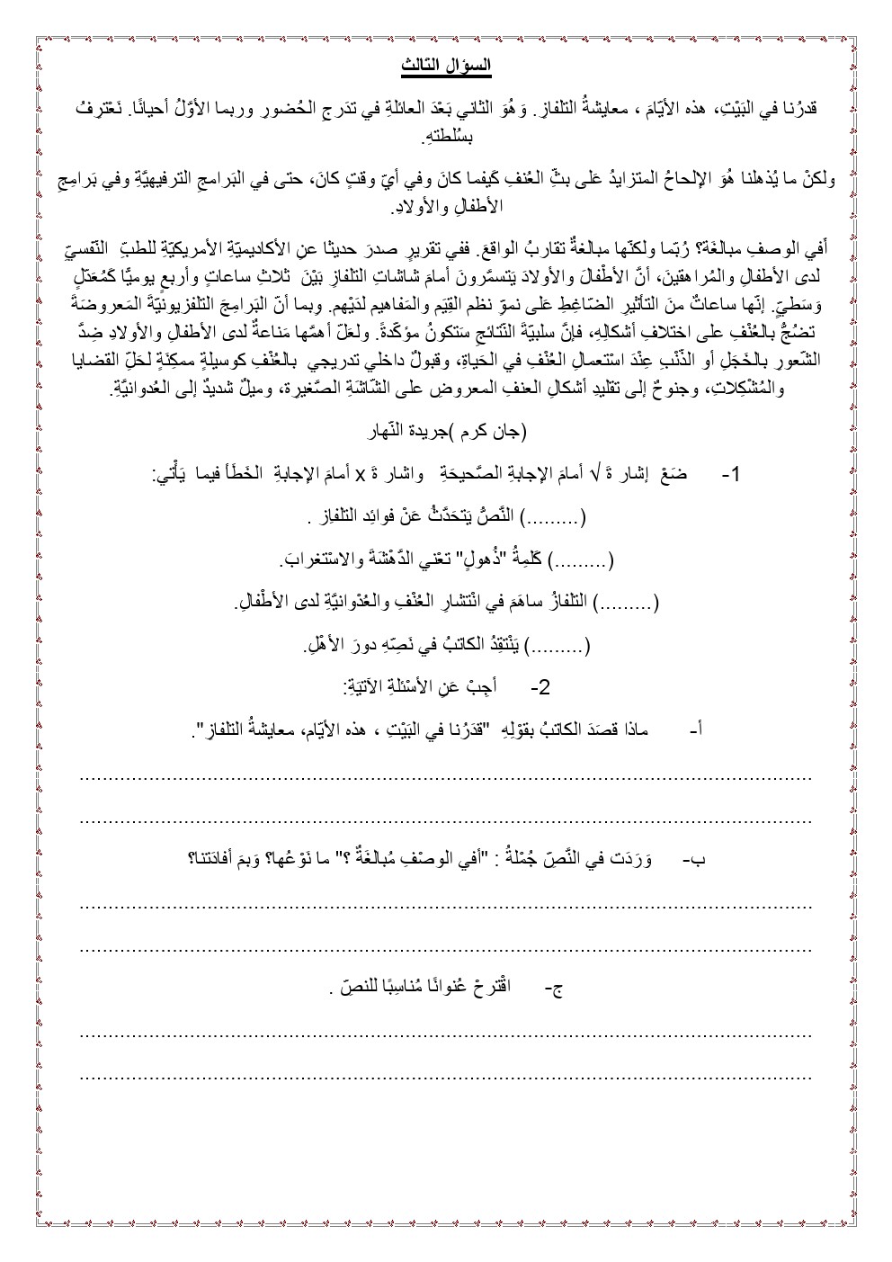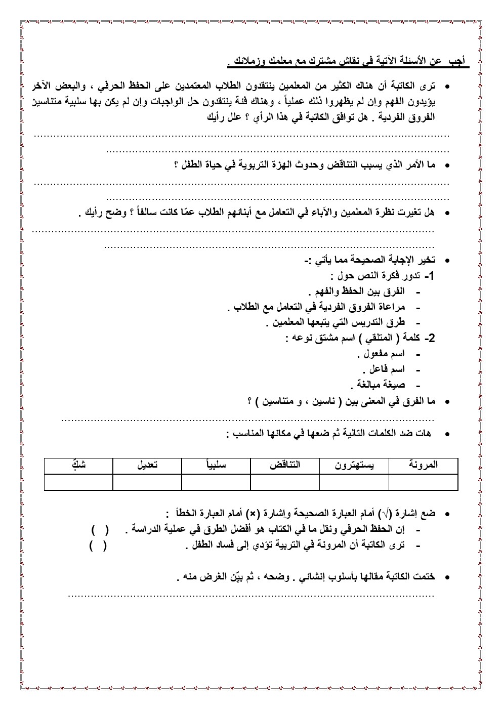 نموذج امتحاني تدريبي | ||