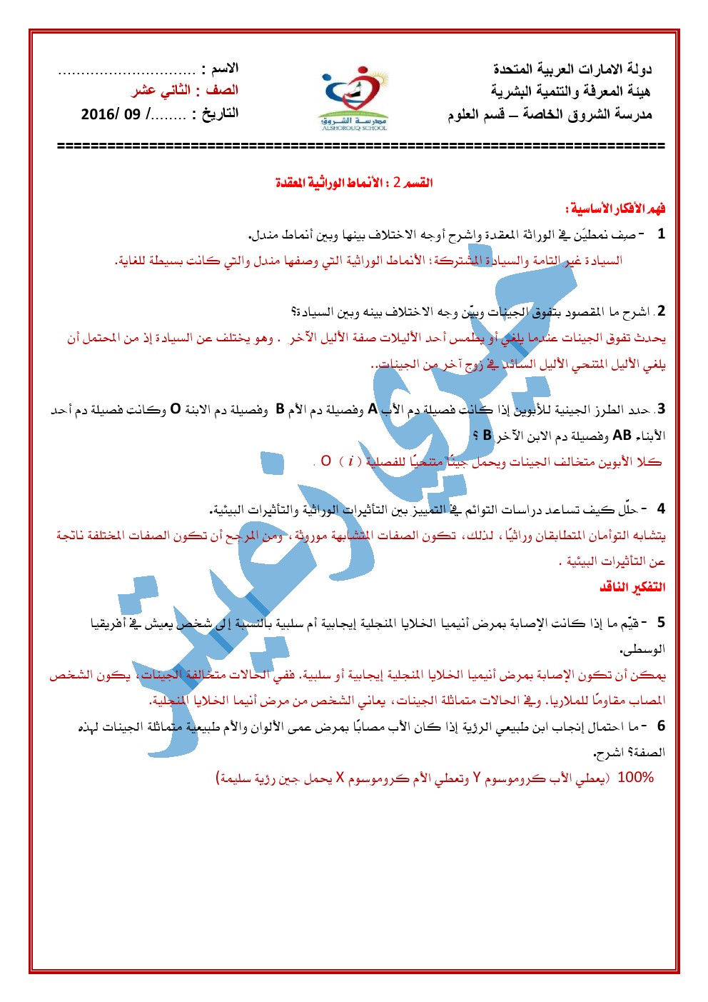معلومات الملف: الصف الثاني عشر, الفصل الأول, علوم, إجابات الوحدة التاسعة 2016-2017 | ||
