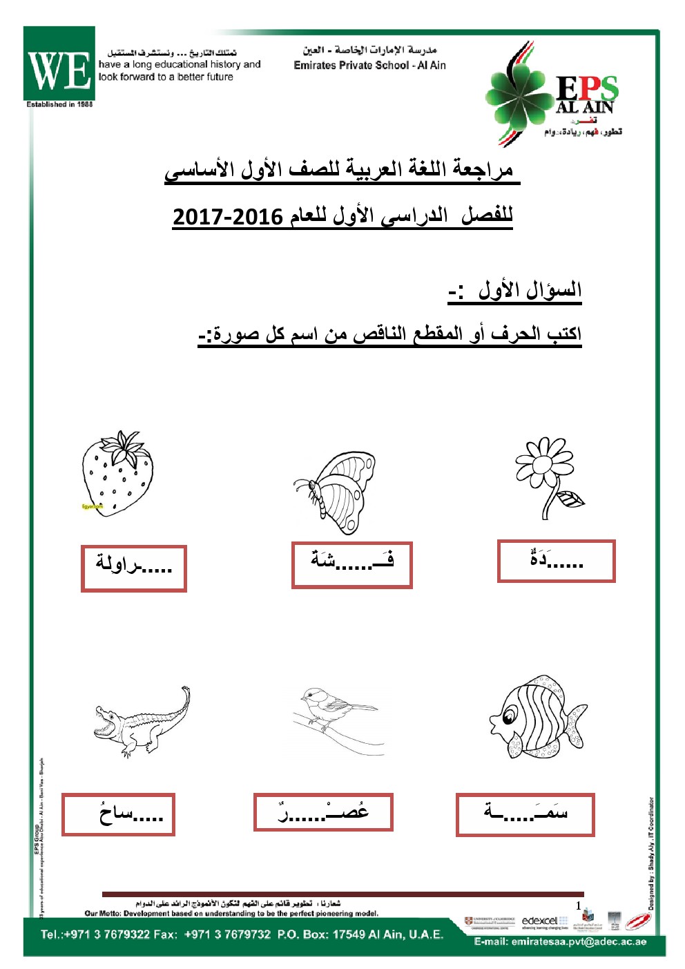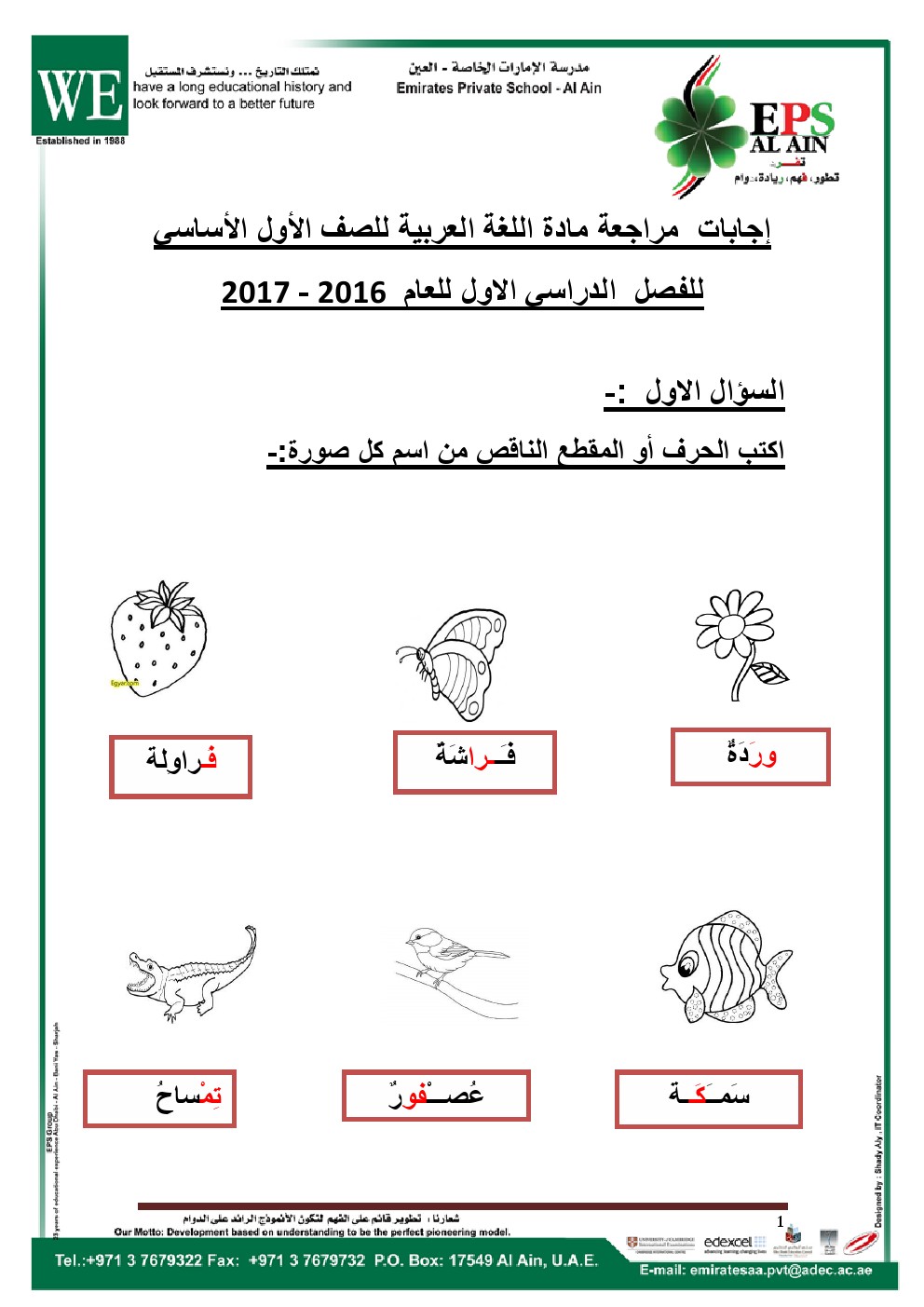 معلومات الملف: الصف الأول, الفصل الأول, لغة عربية, مراجعة نهائية 2016-2017 مع الاجابات | ||