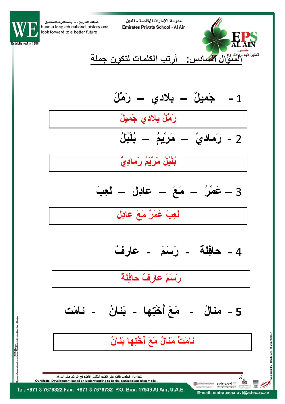 | المادة: لغة عربية | ||