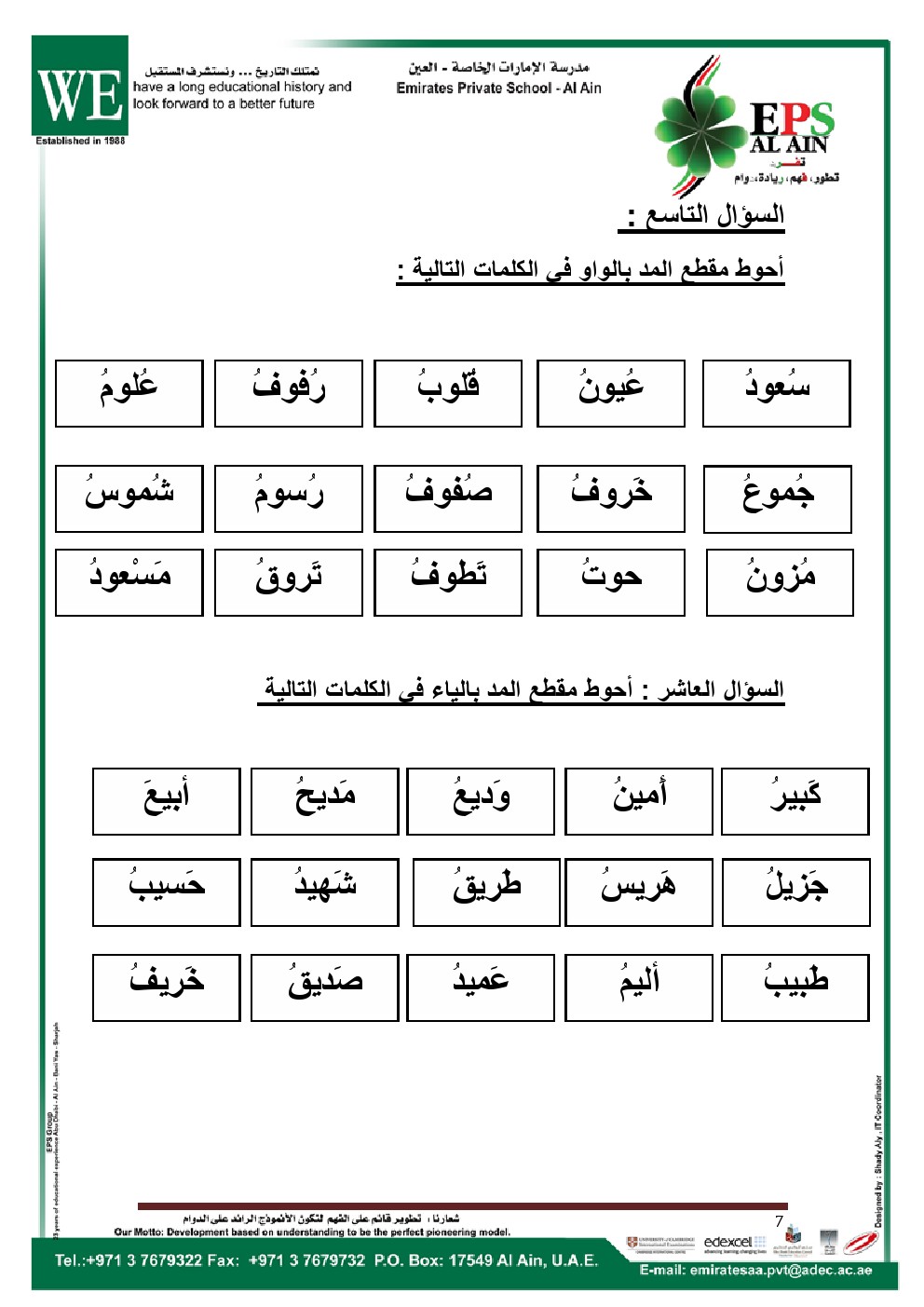 | أهلاً بكم جميعاً طلاباً ومدرسين وأهالي طلبة ومهتمين، في قسم دولة الإمارات ، نحن الآن في الفصل الأول من العام الدراسي 2025/2026 وتاريخ اليوم 2025/11/28 م | |