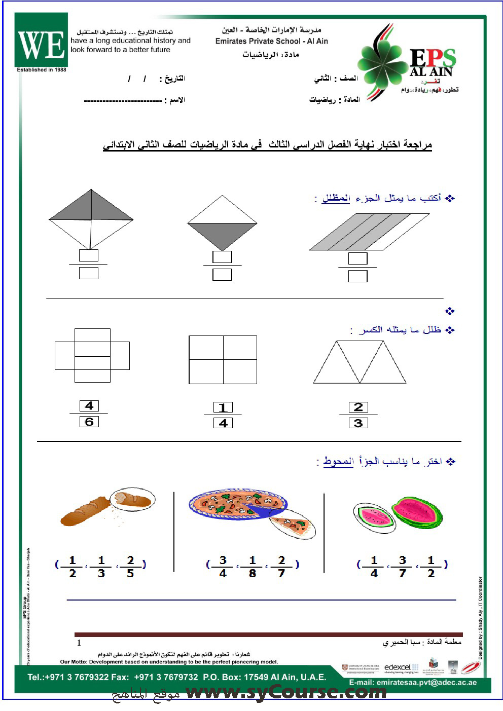 معلومات الملف: الصف الثاني, الفصل الأول, رياضيات, مراجعة نهائية 2016-2017 | ||