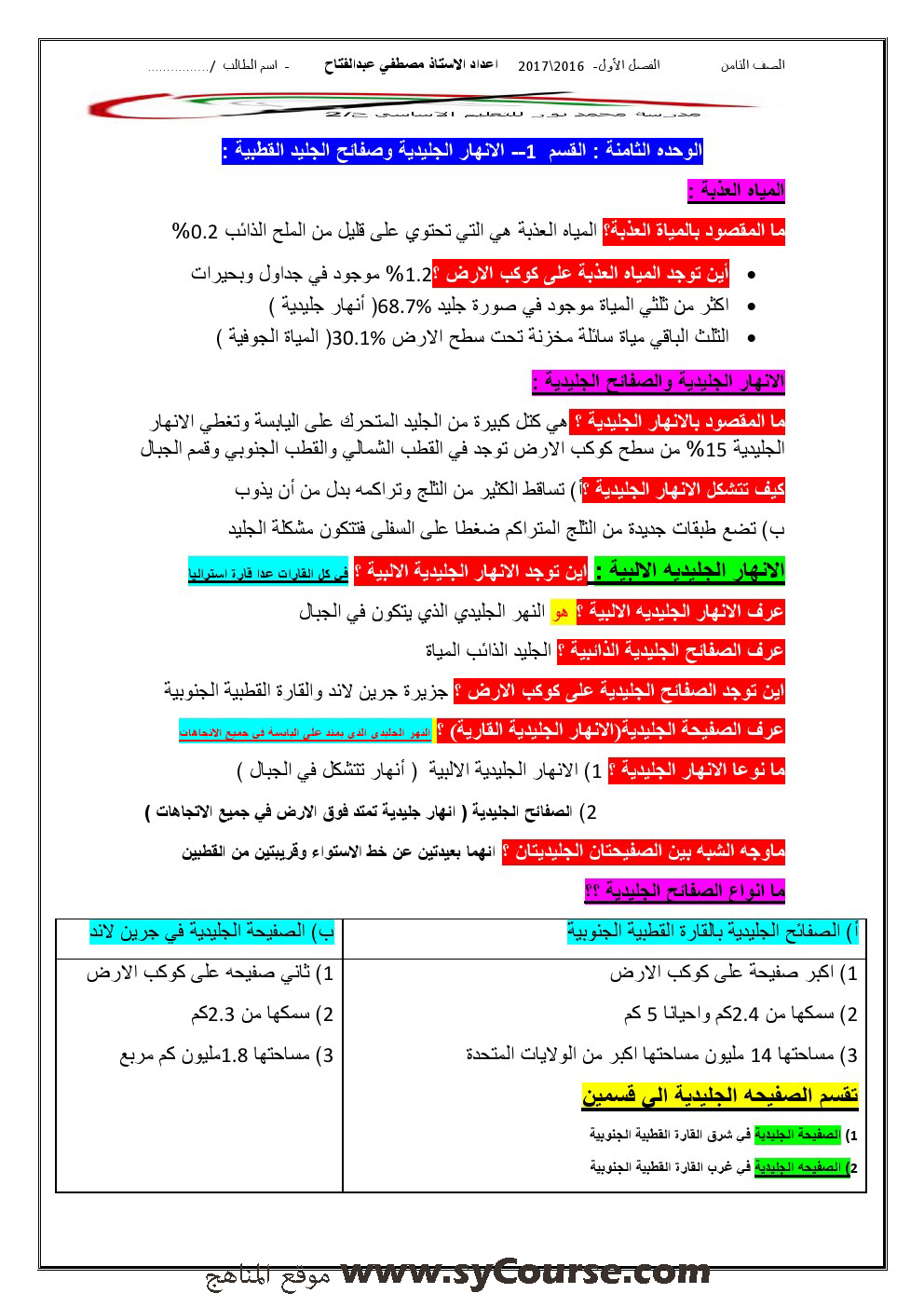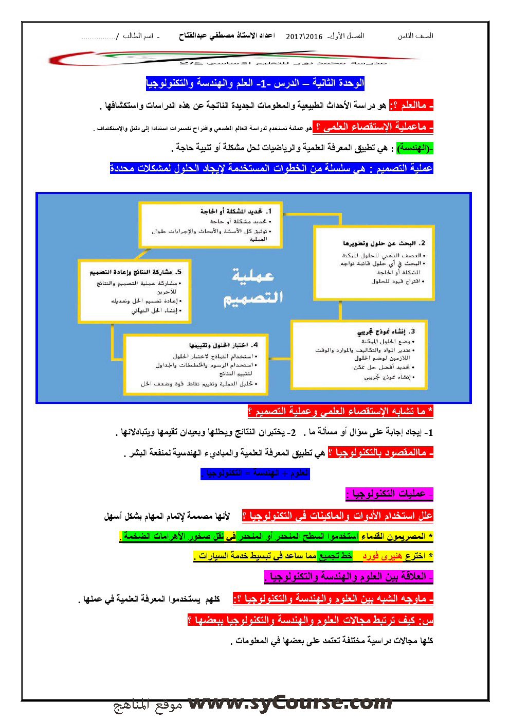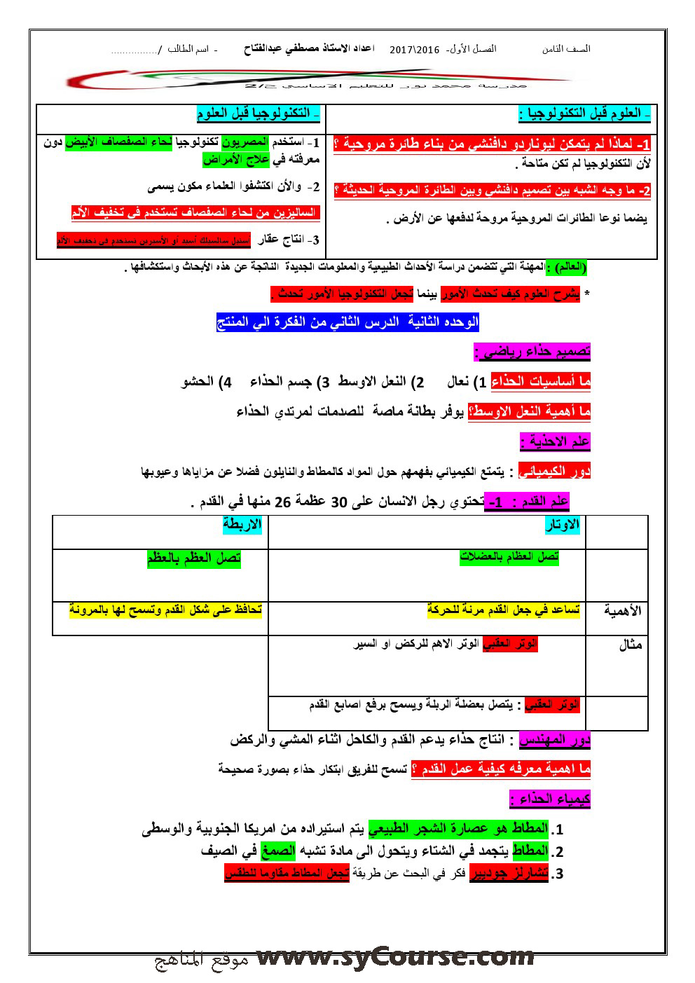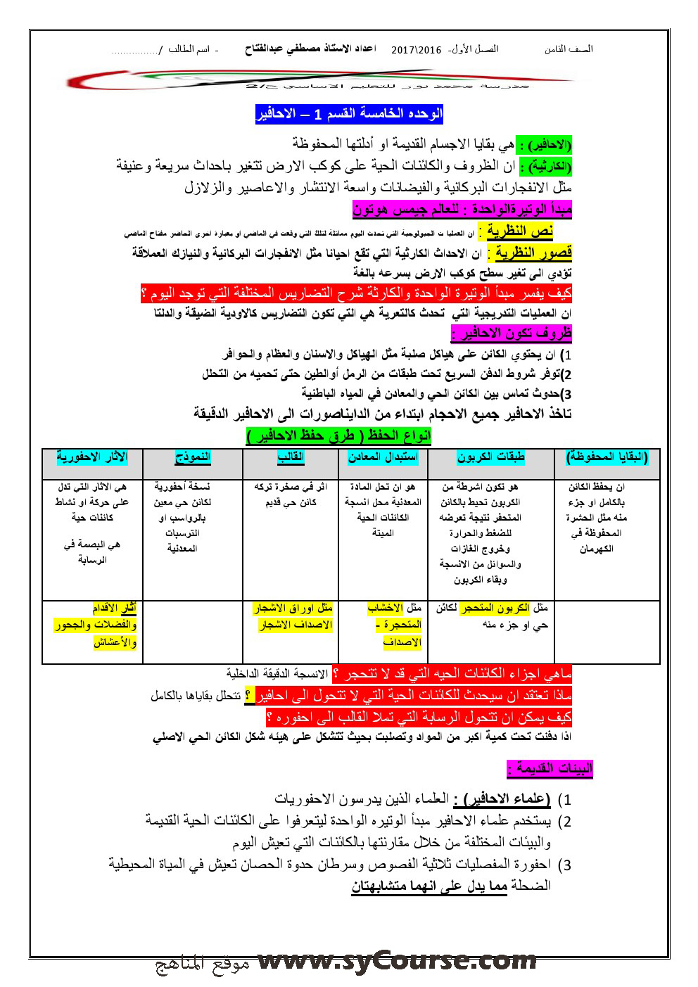معلومات الملف: الصف الثامن, الفصل الأول, علوم, مراجعة نهائية 2016-2017 | ||