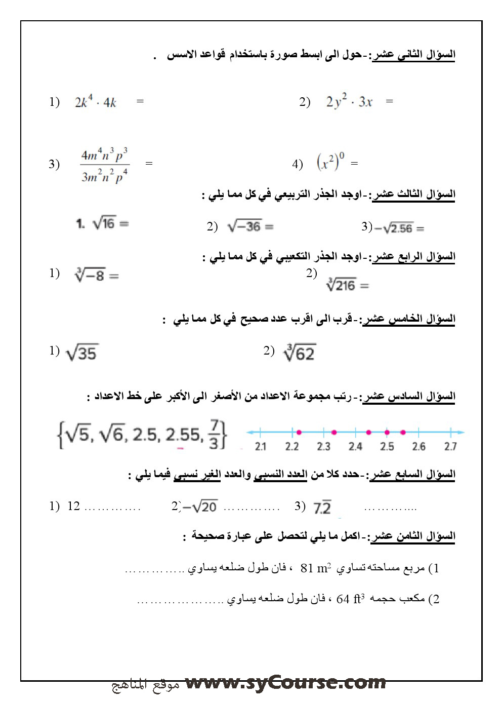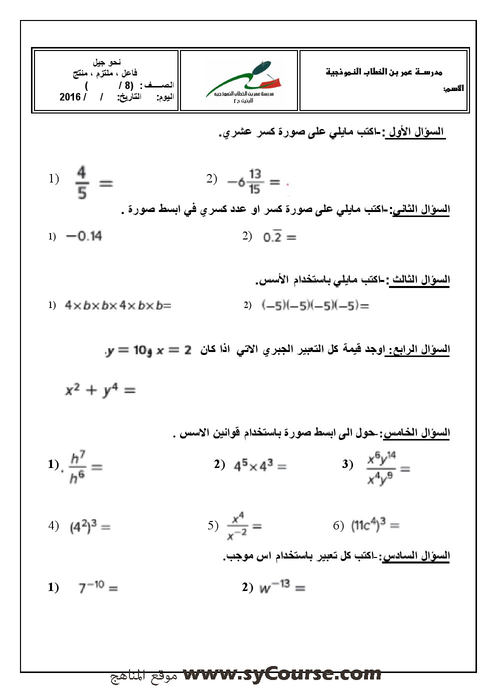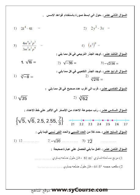 معلومات الملف: الصف الثامن, الفصل الأول, رياضيات, مراجعة نهائية 2016-2017 | ||