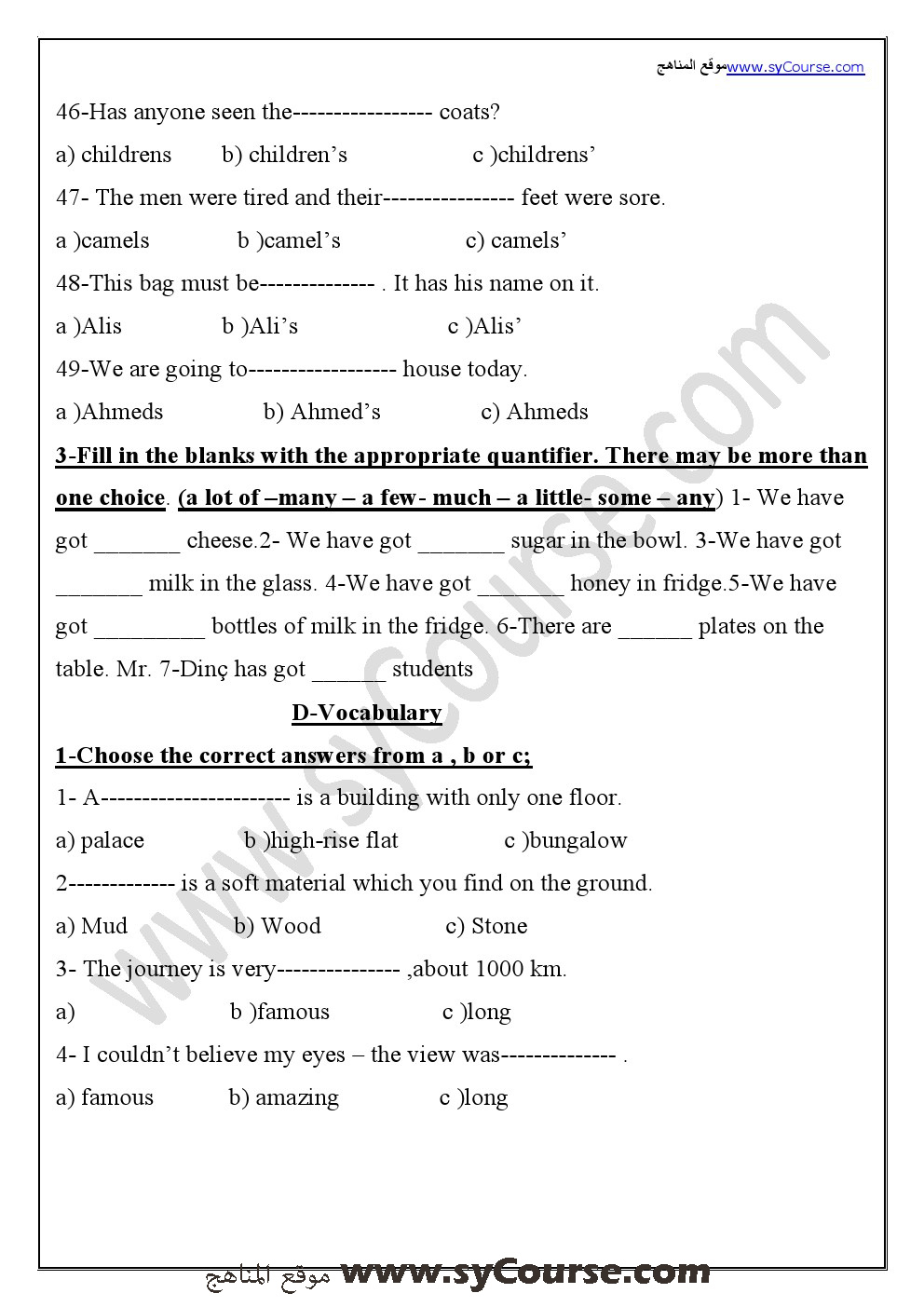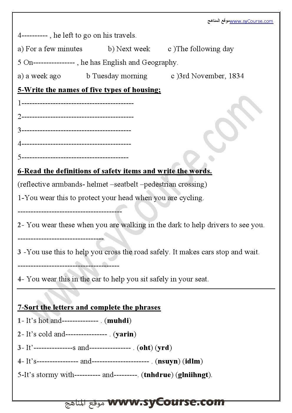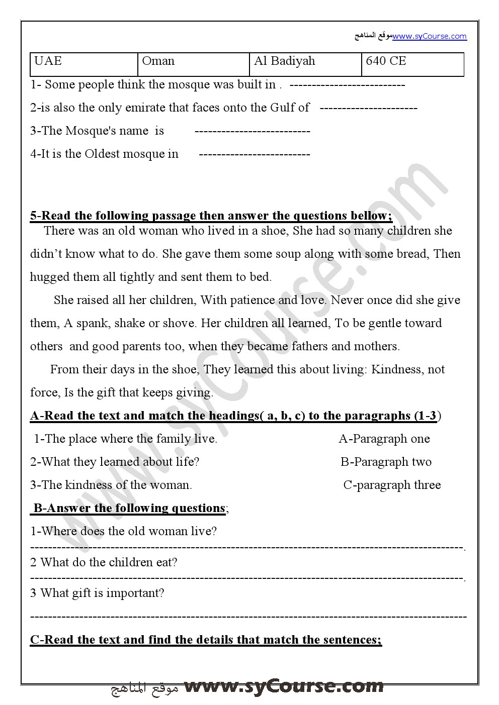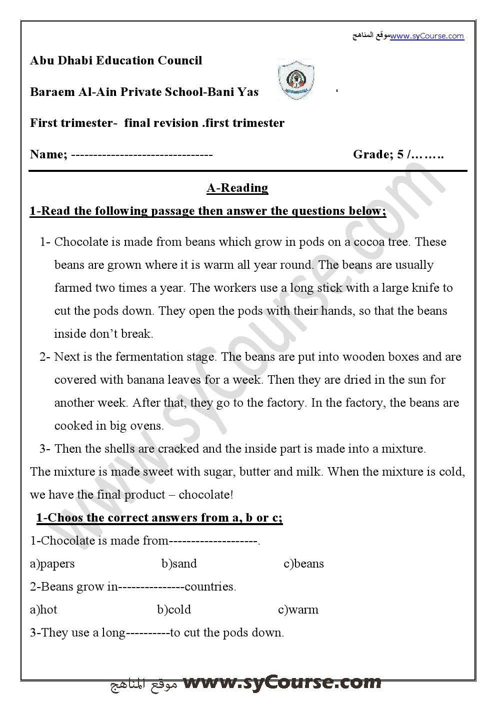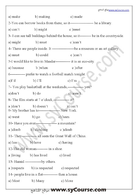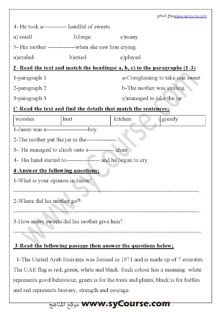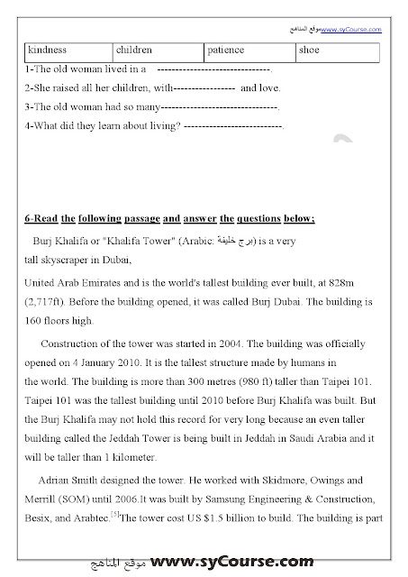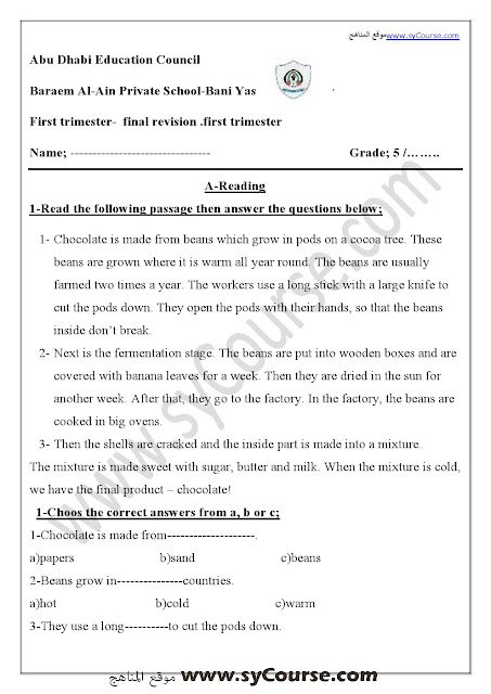 معلومات الملف: الصف الخامس, الفصل الأول, لغة انكليزية , مراجعة نهائية قبل الامتحان 2016-2017 | ||