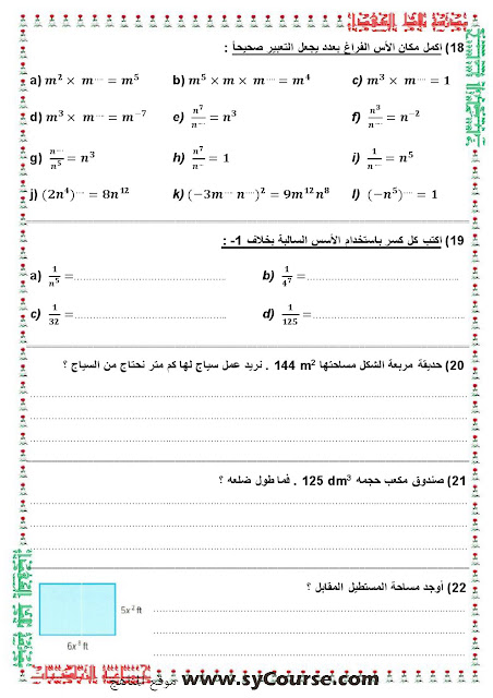 معلومات الملف: الصف الثامن, الفصل الأول, رياضيات, مراجعة إضافية وشاملة 2016-2017  | ||