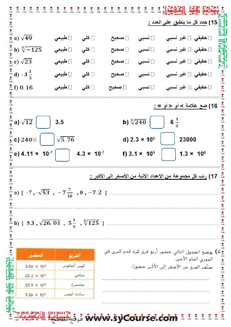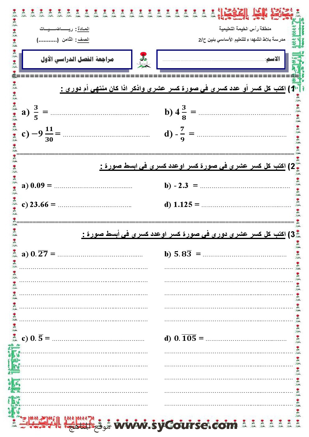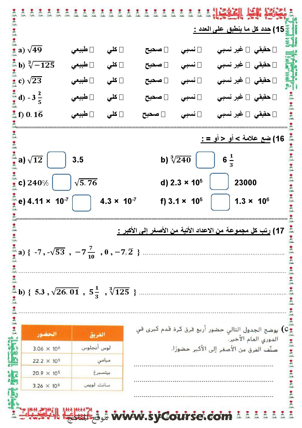 معلومات الملف: الصف الثامن, الفصل الأول, رياضيات, مراجعة إضافية وشاملة 2016-2017 | ||