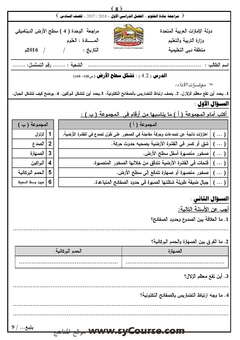 معلومات الملف: الصف السادس, الفصل الأول, علوم, مراجعة نهائية شاملة 2016-2017 | ||