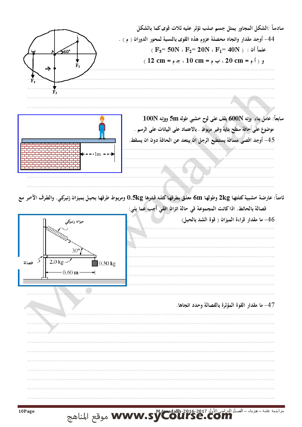 معلومات الملف: الصف الثاني عشر, الفصل الأول, فيزياء, أسئلة تدريبية ومراجعة شاملة لامتحان نهاية الفصل الأول للعام الدراسي 2016-2017 | ||