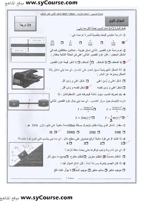 معلومات الملف: الصف الثاني عشر المتقدم, الفصل الأول, فيزياء,نموذجامتحاني تدريبي 2016-2017 | ||