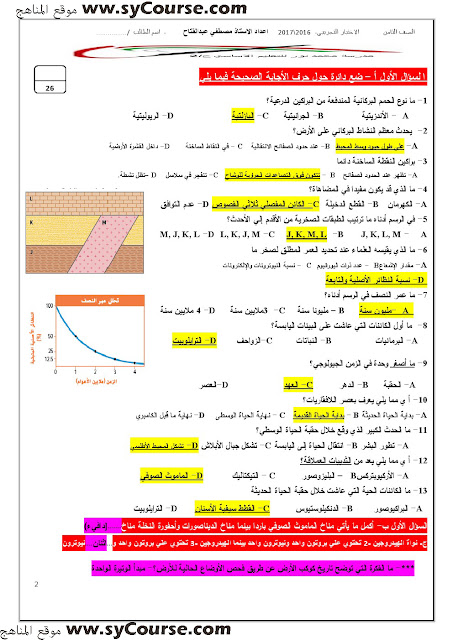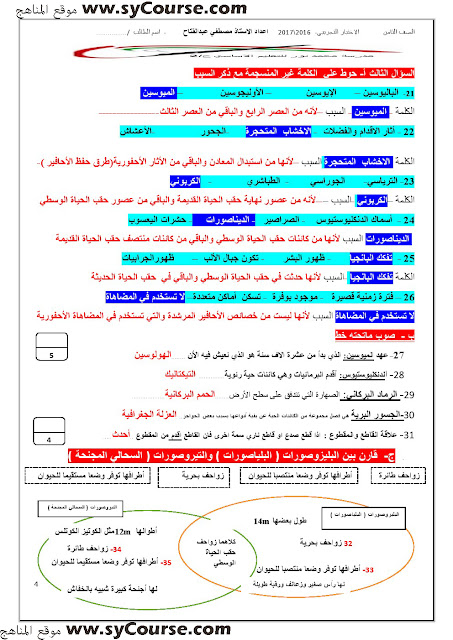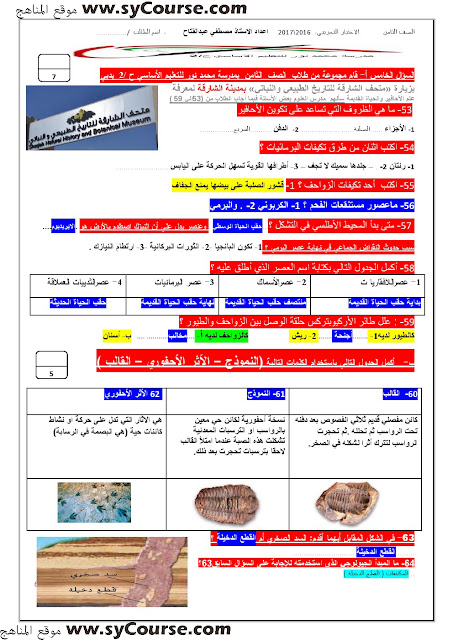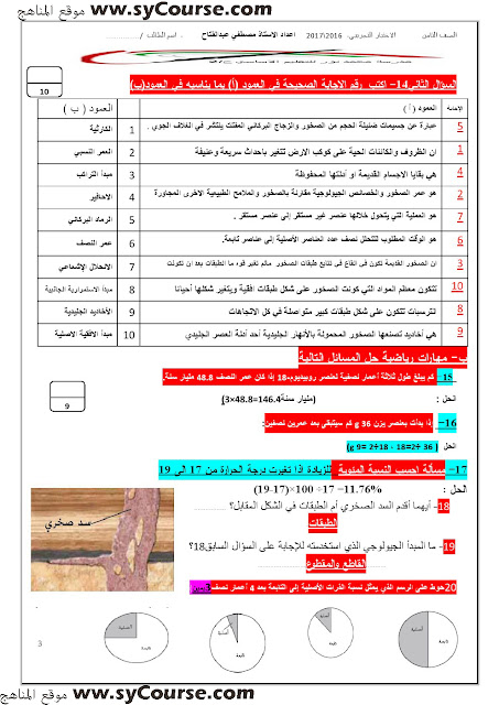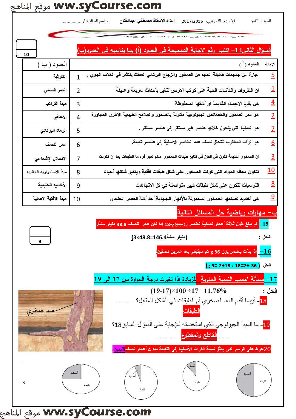 معلومات الملف: الصف الثامن, الفصل الأول, علوم, أجوبةنموذجتدريبي على الامتحان النهائي 2016-2017 | ||