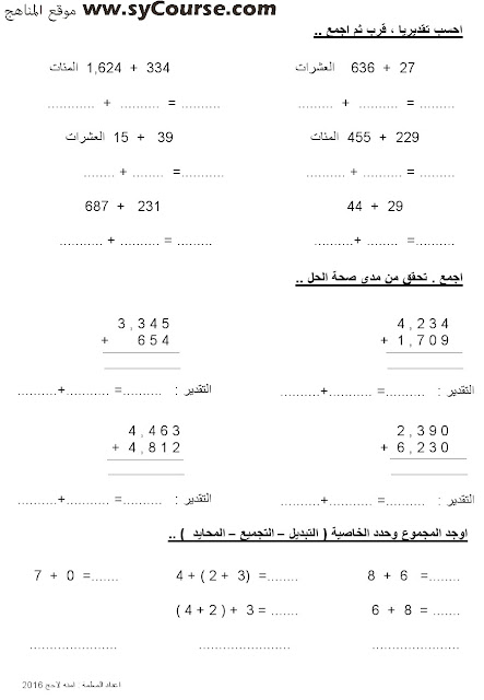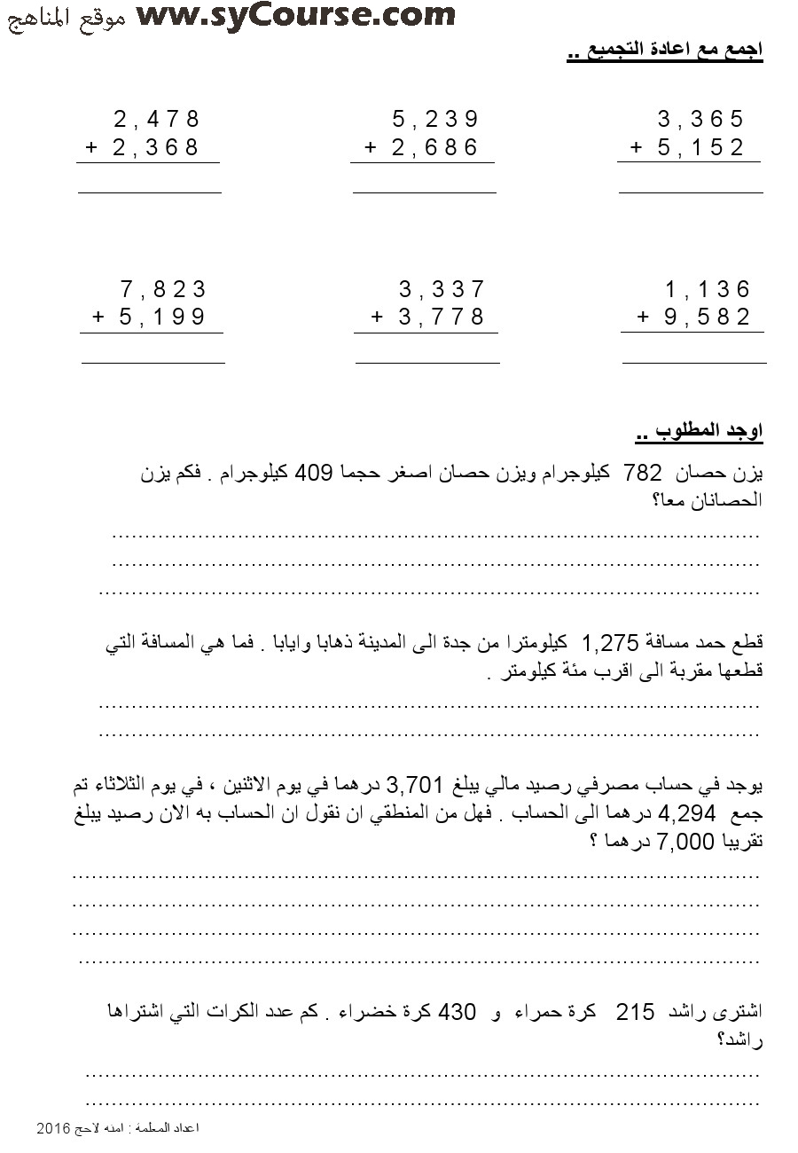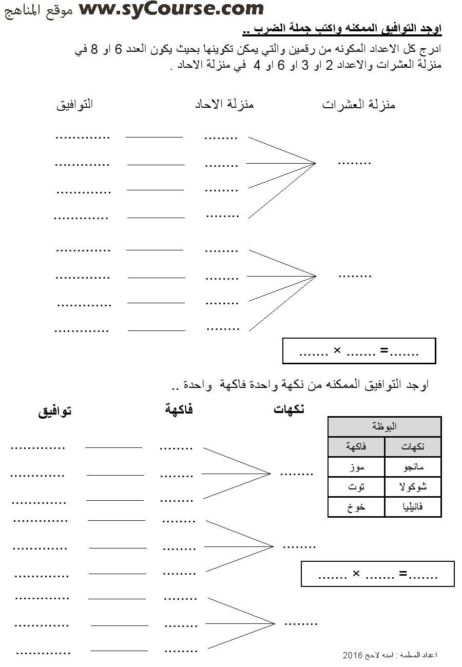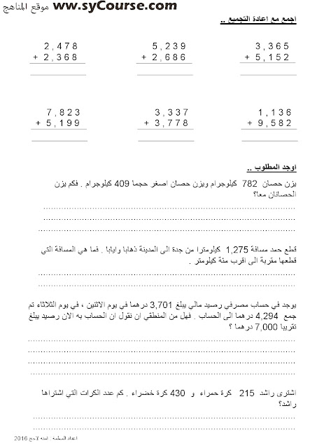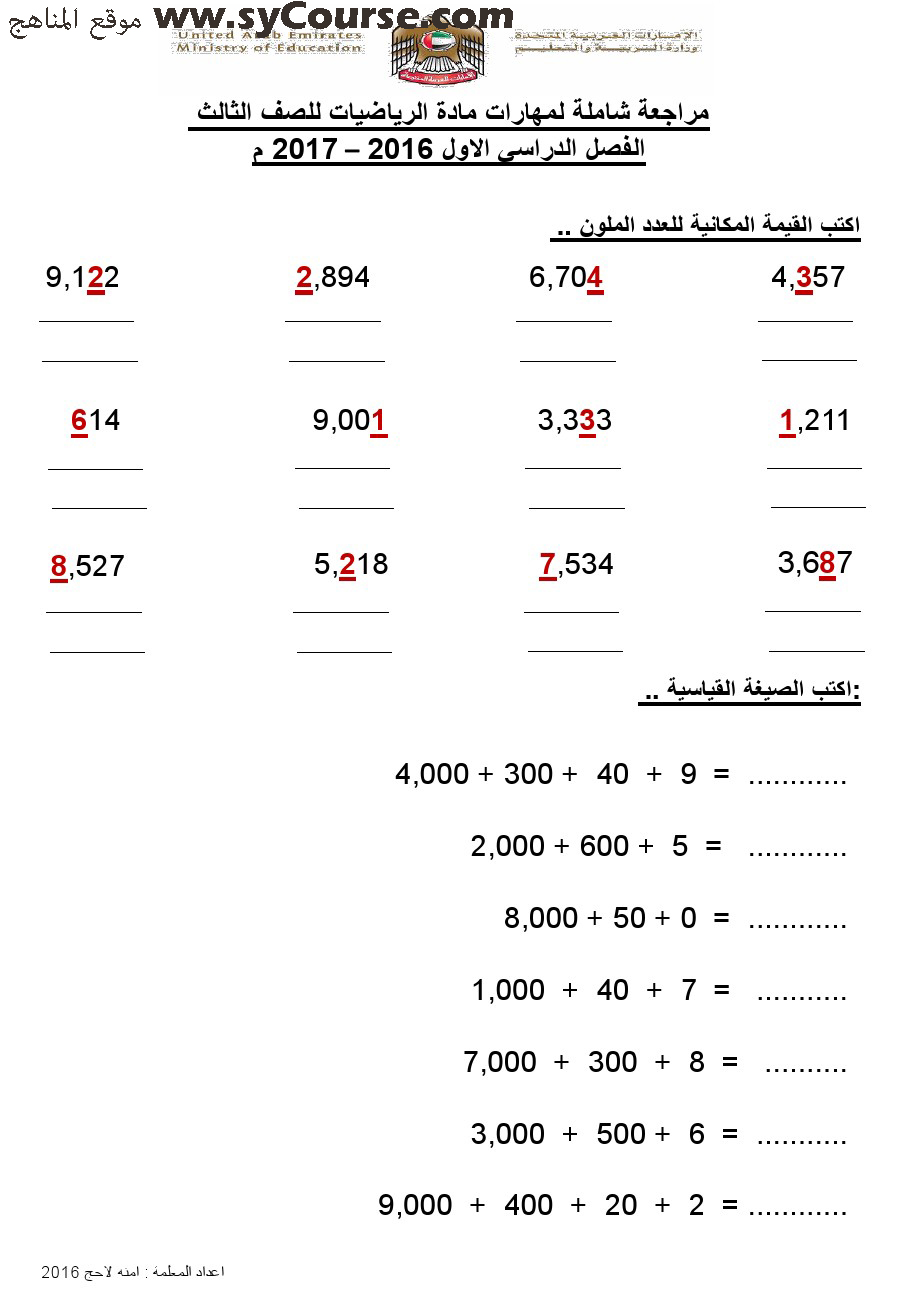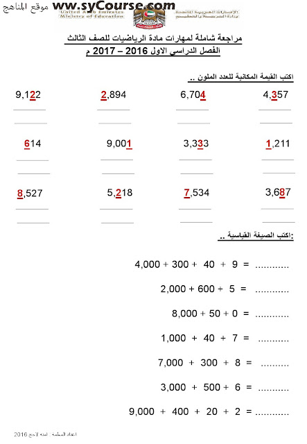 معلومات الملف: الصف الثالث, الفصل الأول, رياضيات, مراجعة شاملة قبل امتحان نهاية الفصل الأول للعام الدراسي 2016-2017 | ||