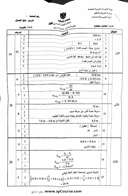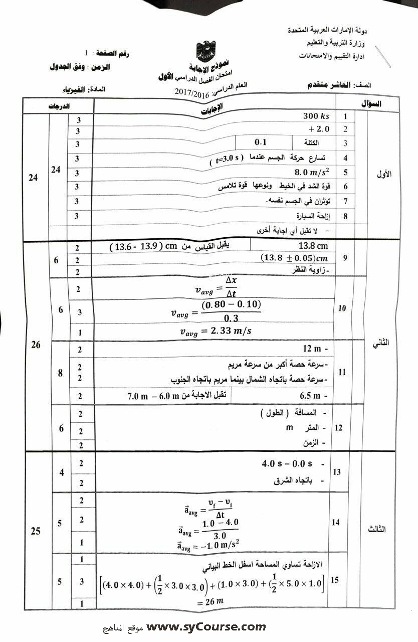 معلومات الملف: الصف العاشر, الفصل الأول, فيزياء,نموذجالاجابة لامتحان الوزارة 2016-2017 | ||