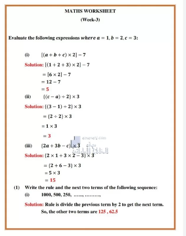 3. أوراق عمل مراجعة الوحدة السادسة التعابير والأنماط