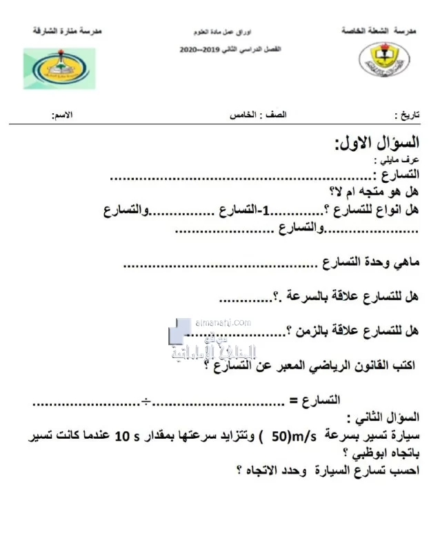 تم إيجاد الملف: ورقة عمل درس التسارع