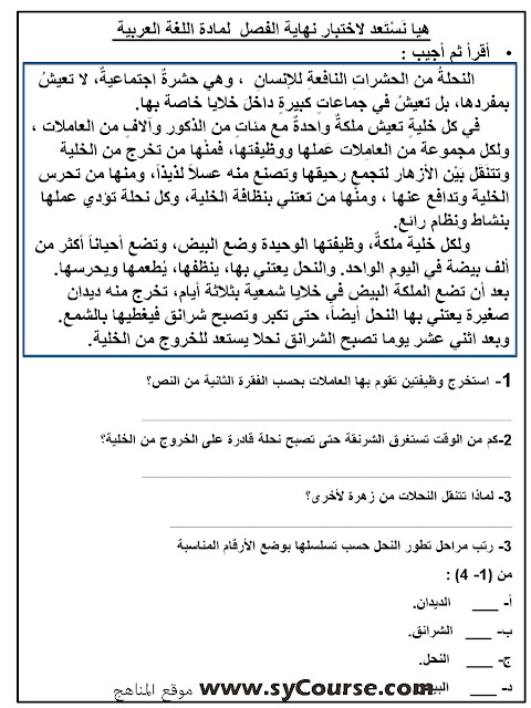 | المادة: لغة عربية | ||