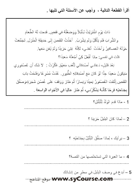 معلومات الملف: الصف الثالث, الفصل الأول, لغة عربية,نموذجتدريبي امتحاني اضافي 2016-2017 | ||