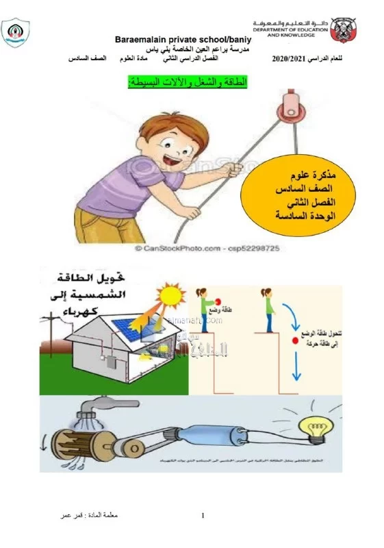 معلومات الملف: نرفق لكم ملف يتضمن حل أوراق عمل وحدة الطاقة والشغل والآلات البسيطة الصف السادس مادة العلوم المتكاملة.