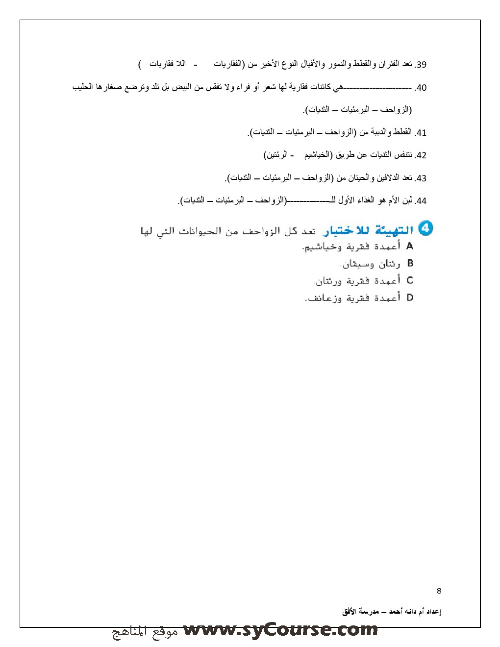 نماذج امتحانية تدريبية, الصف الثالث, علوم, الفصل الأول, 2016-2017 - المناهج الإماراتية