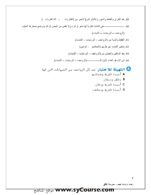 4. نموذج تدريبي ثان وفق الهيكل الوزاري منهج انسباير متبوع بالإجابات