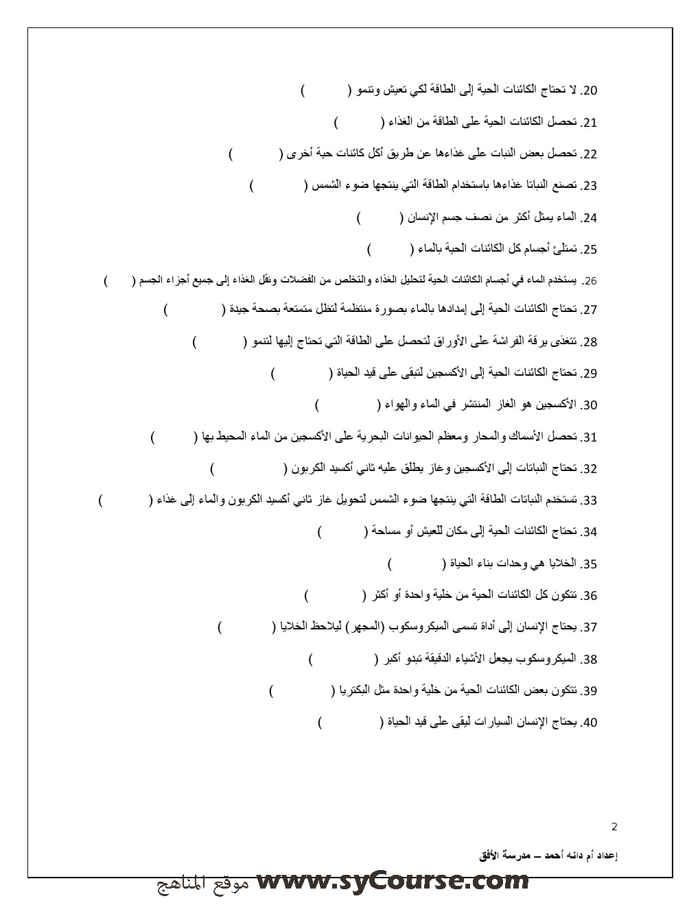 أحدث ملفات الصف الثالث, علوم, الفصل الأول