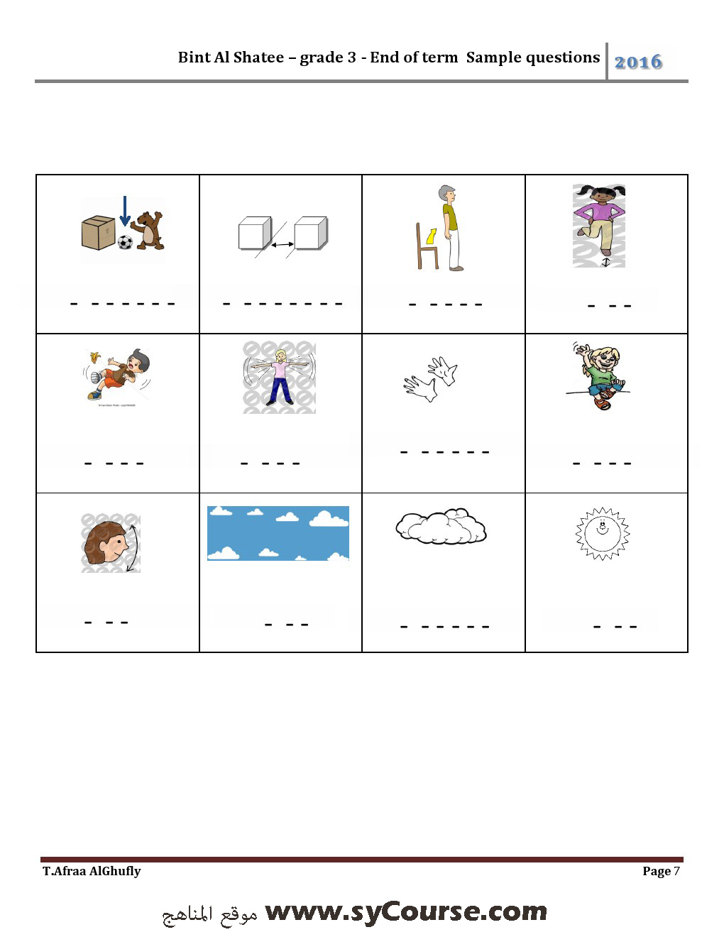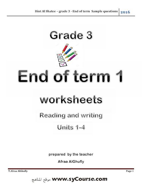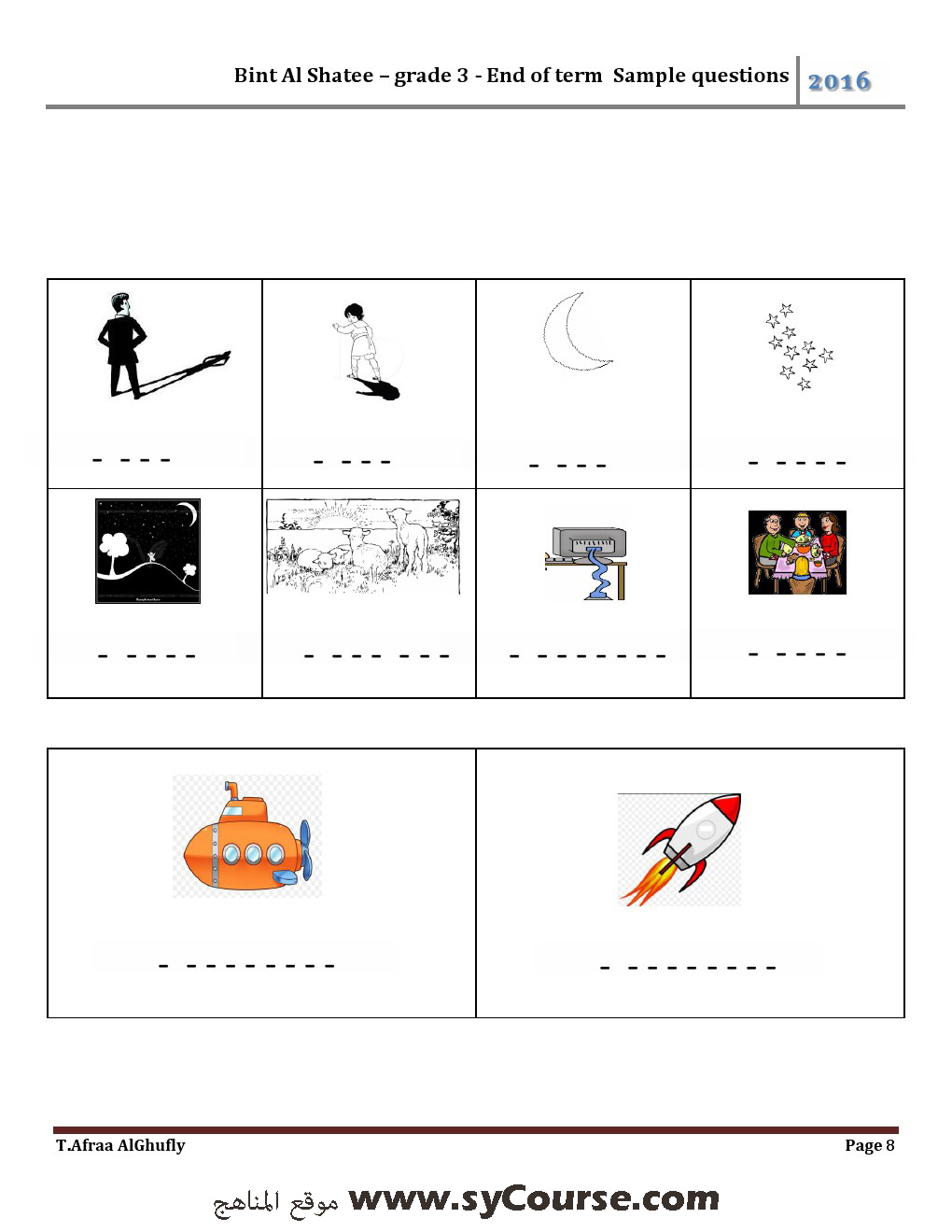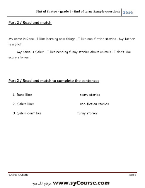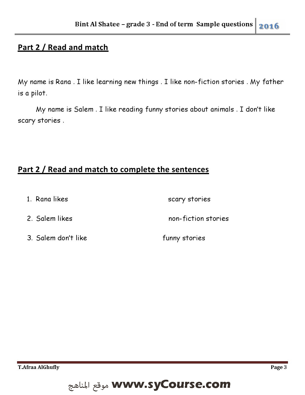 معلومات الملف: الصف الثالث, الفصل الأول, لغة انكليزية,نموذجامتحاني لنهاية الفصل الأول 2016-2017 | ||