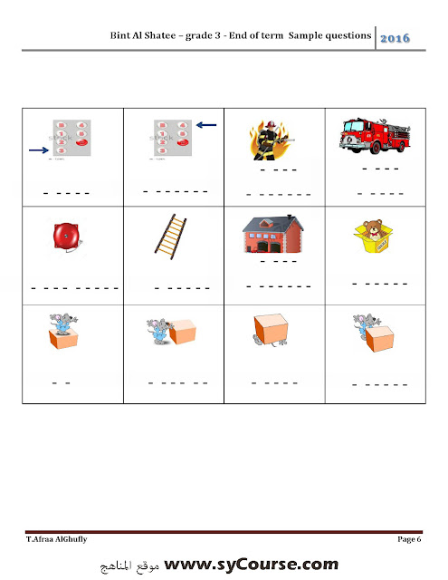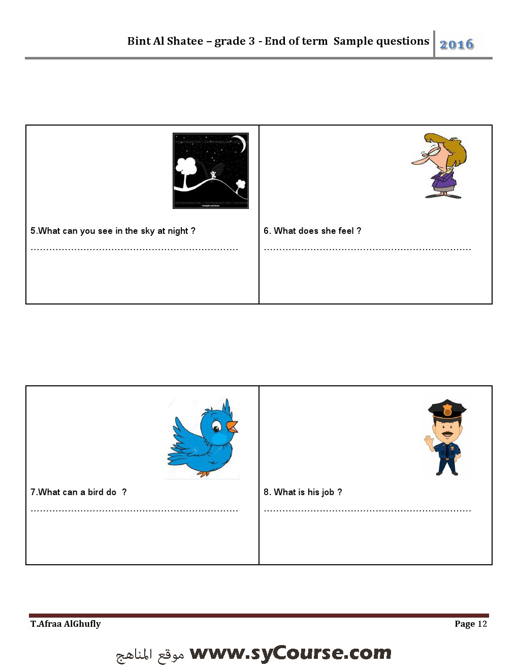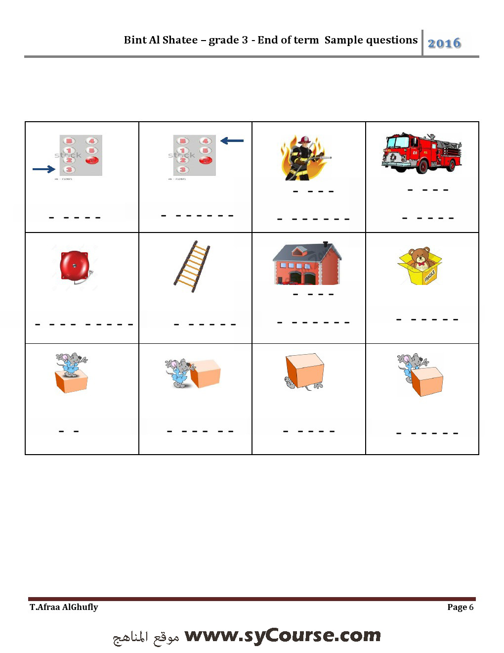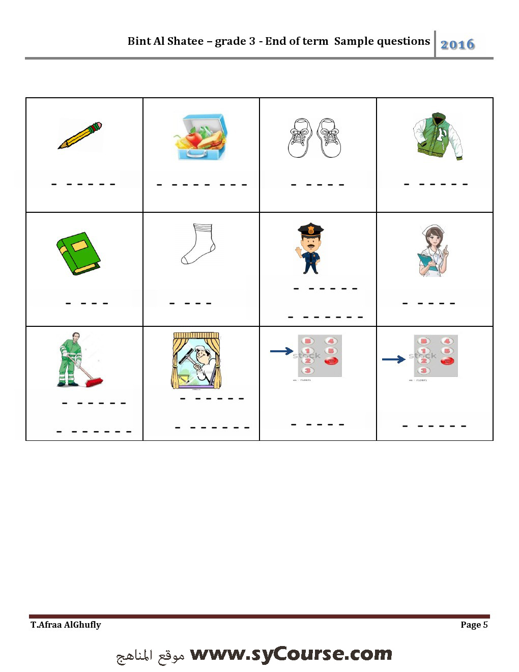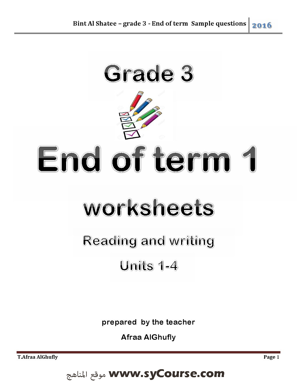 معلومات الملف: الصف الثالث, الفصل الأول, لغة انكليزية,نموذجامتحاني لنهاية الفصل الأول 2016-2017 | ||