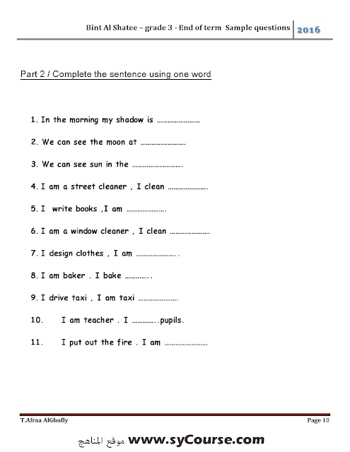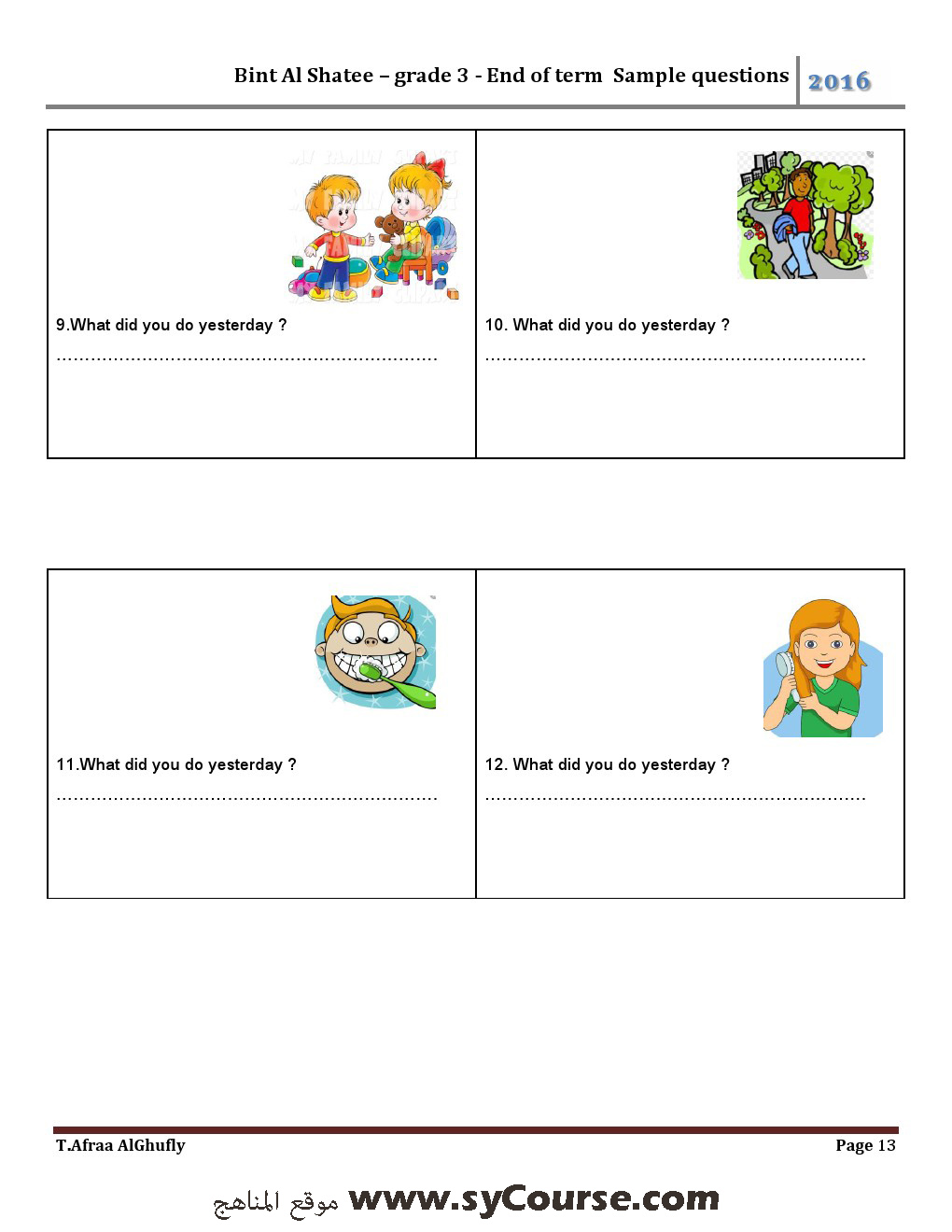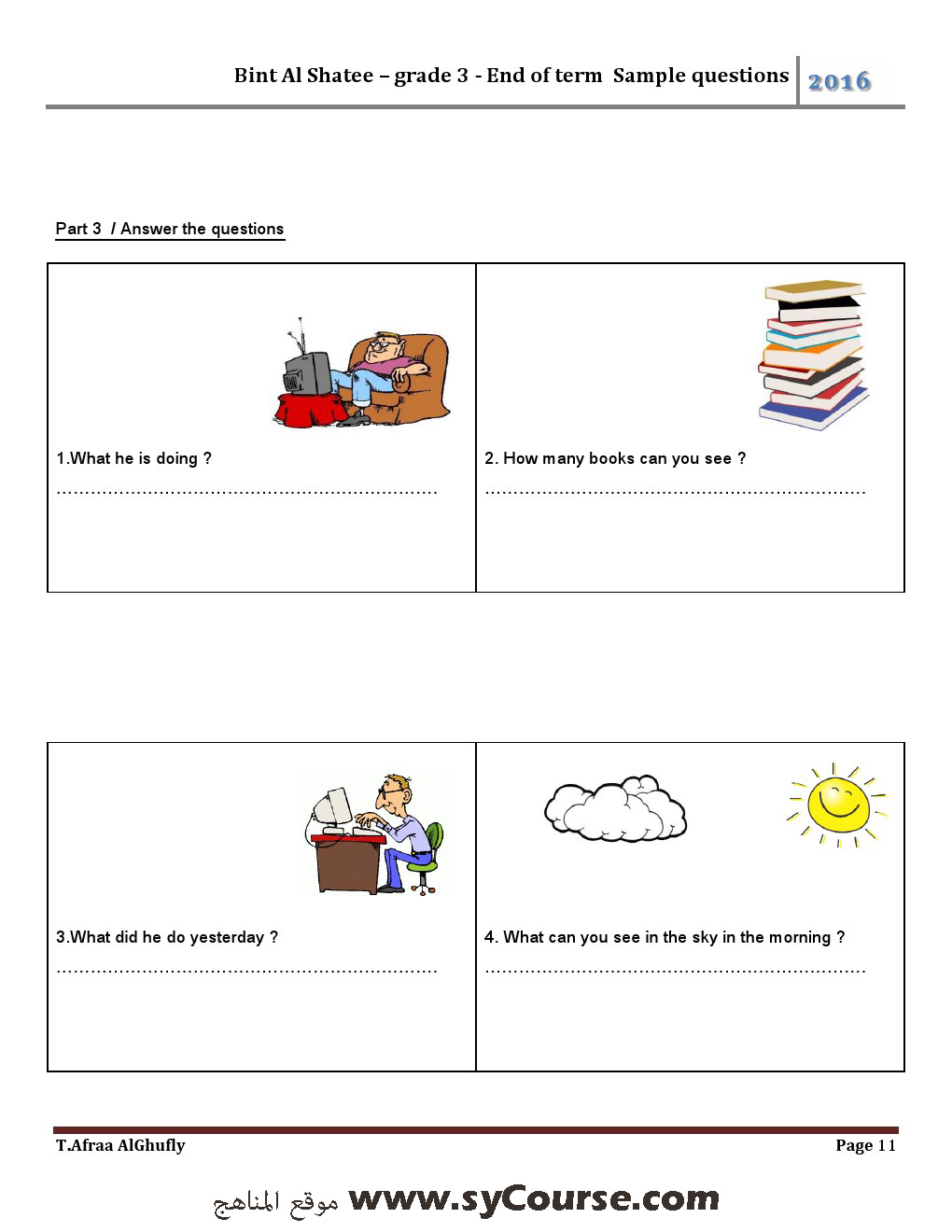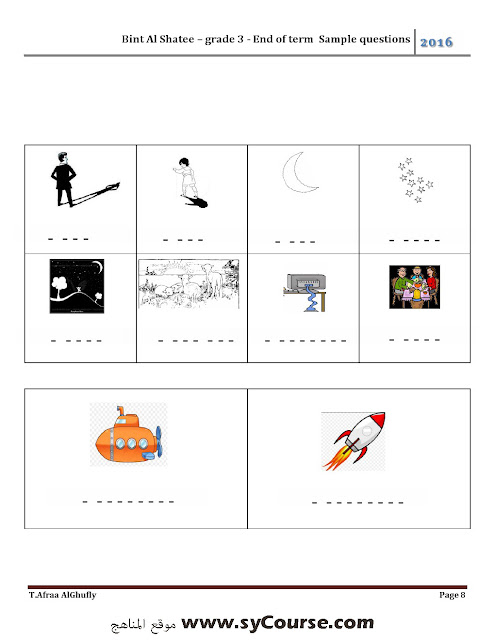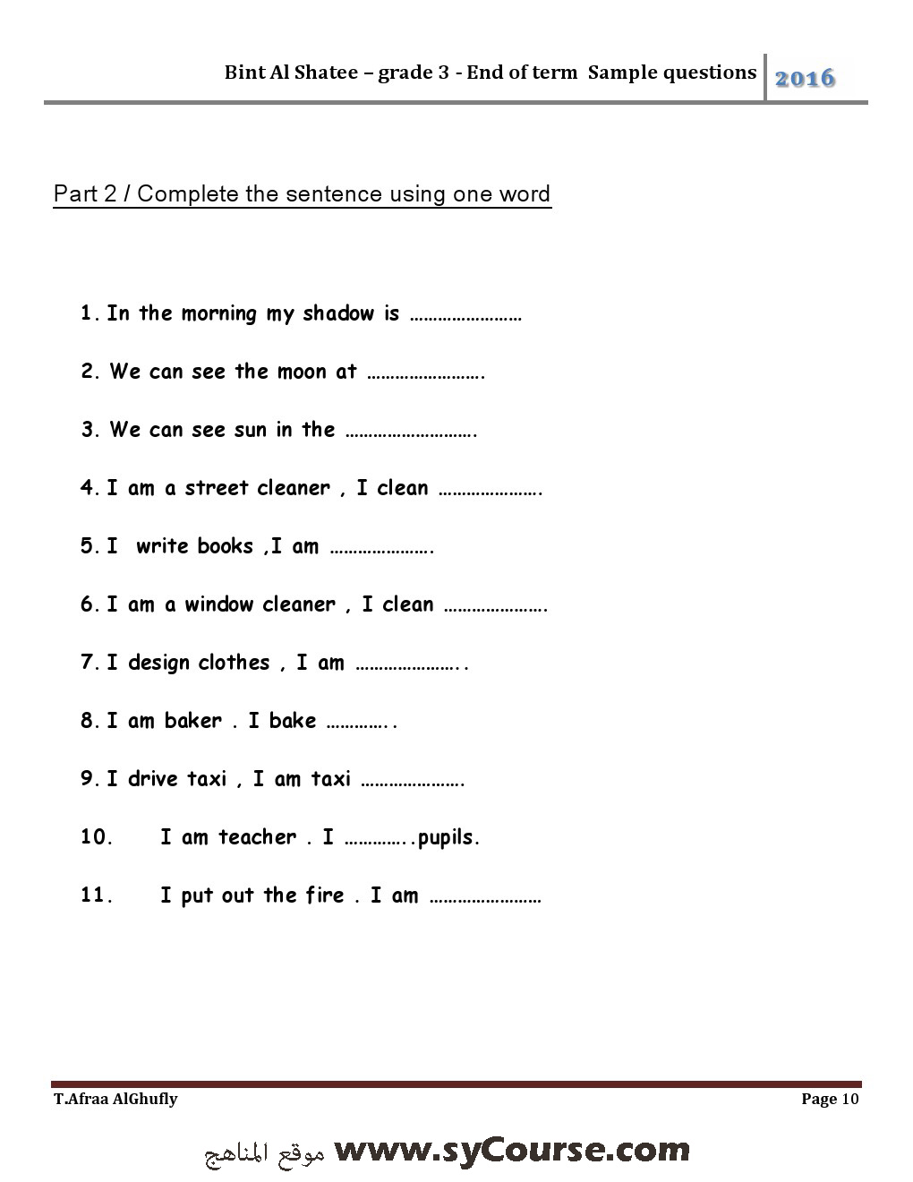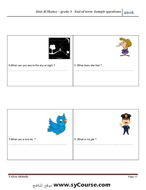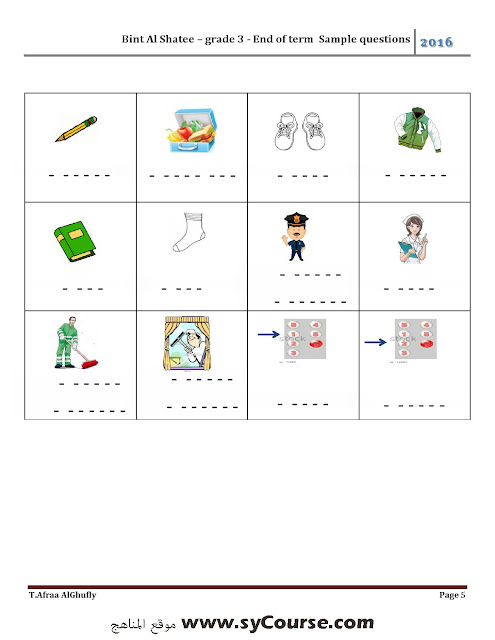 معلومات الملف: الصف الثالث, الفصل الأول, لغة انكليزية,نموذجامتحاني لنهاية الفصل الأول 2016-2017 | ||