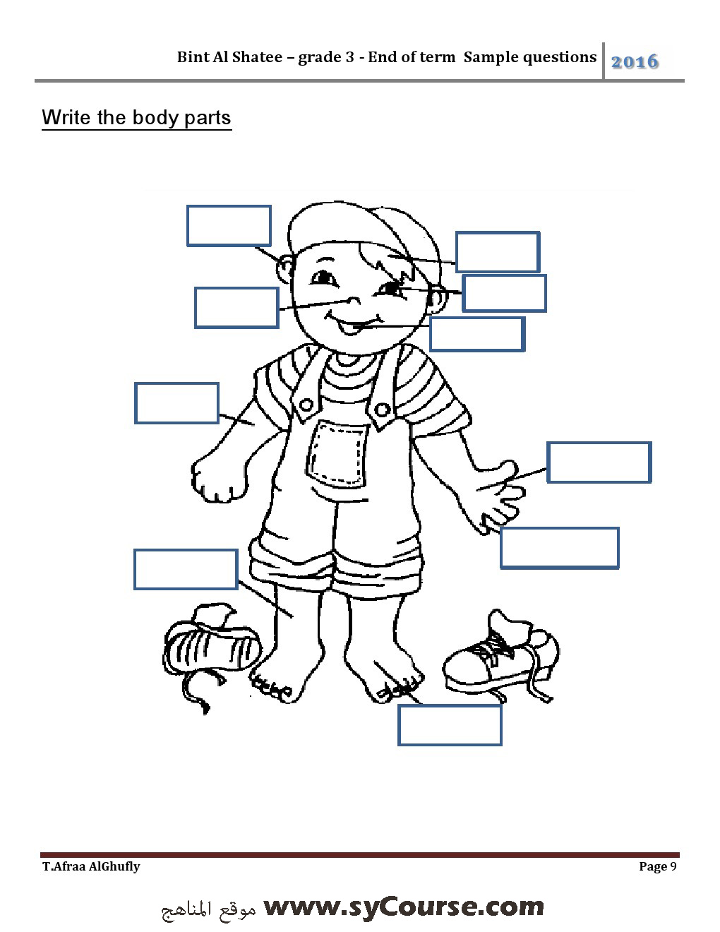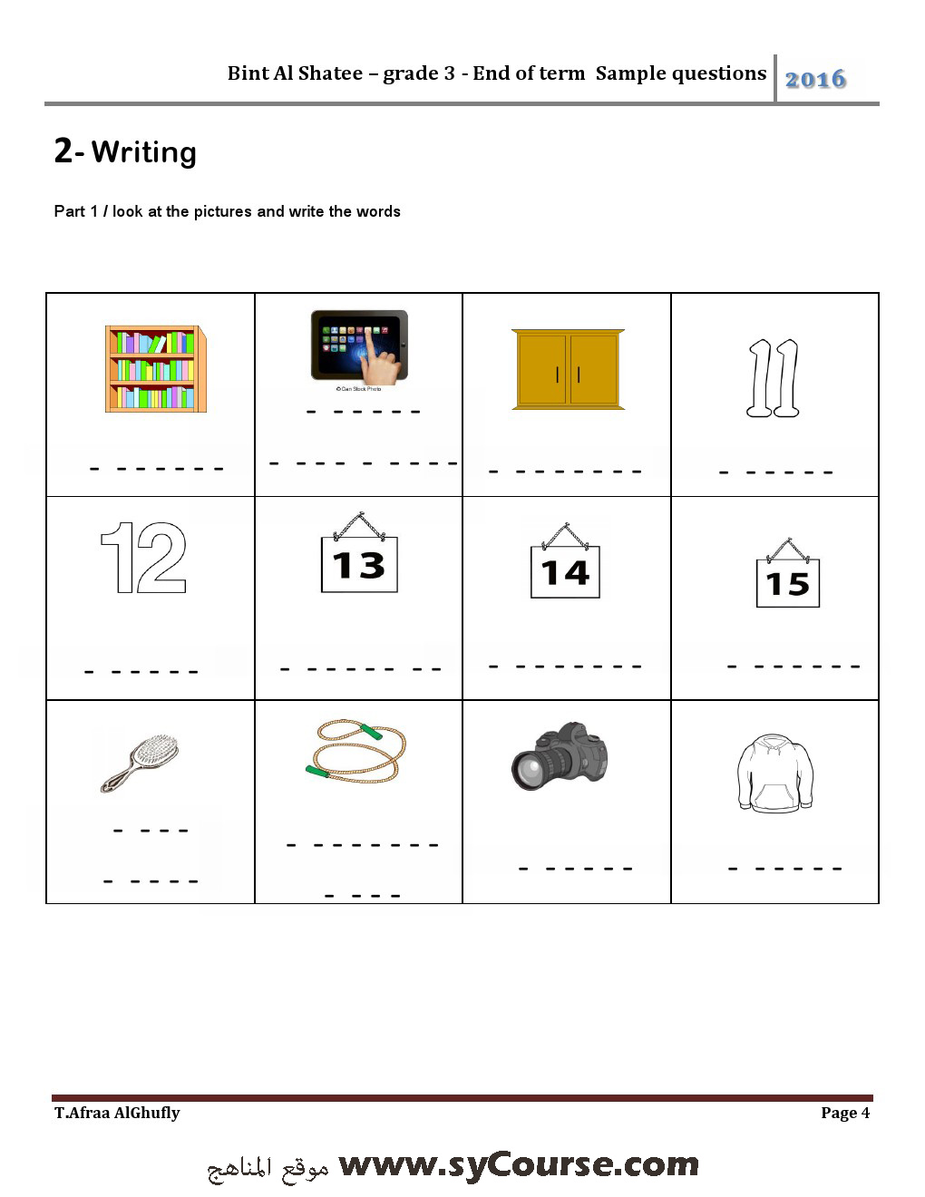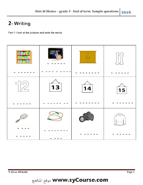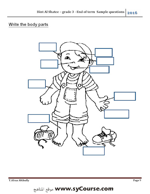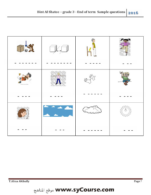 يقدم لكم موقع المناهج نموذج تدريبي لامتحان نهاية الفصل الأول للصف الثالث\ العام الدراسي 2016-2017