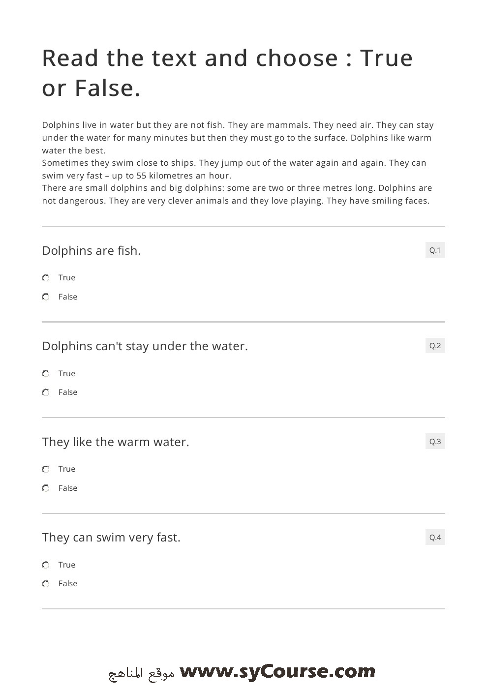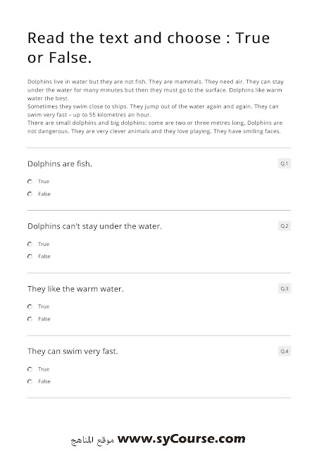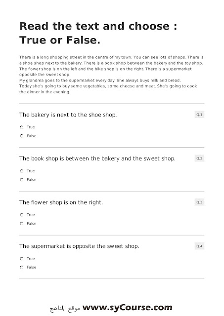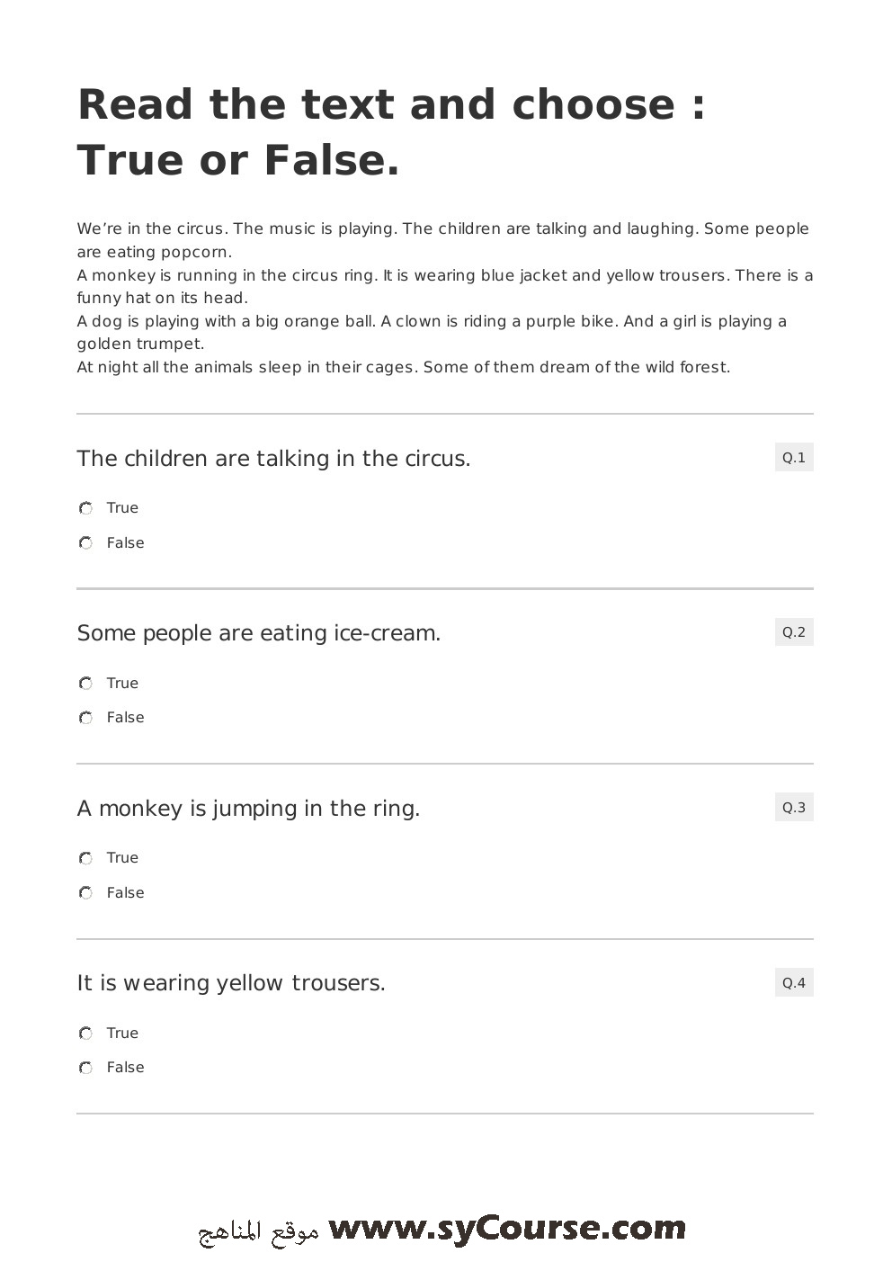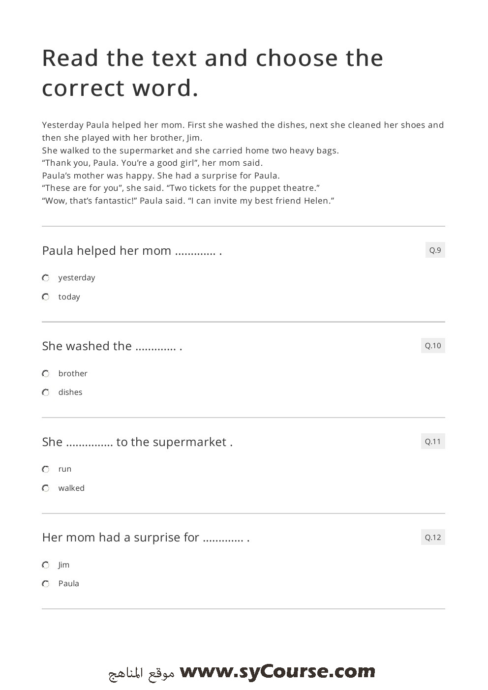 الصف الرابع, الفصل الأول, لغة انكليزية, test your reading 2016-2017 (أربع ملفات في ملف واحد)