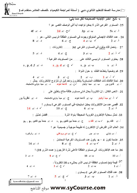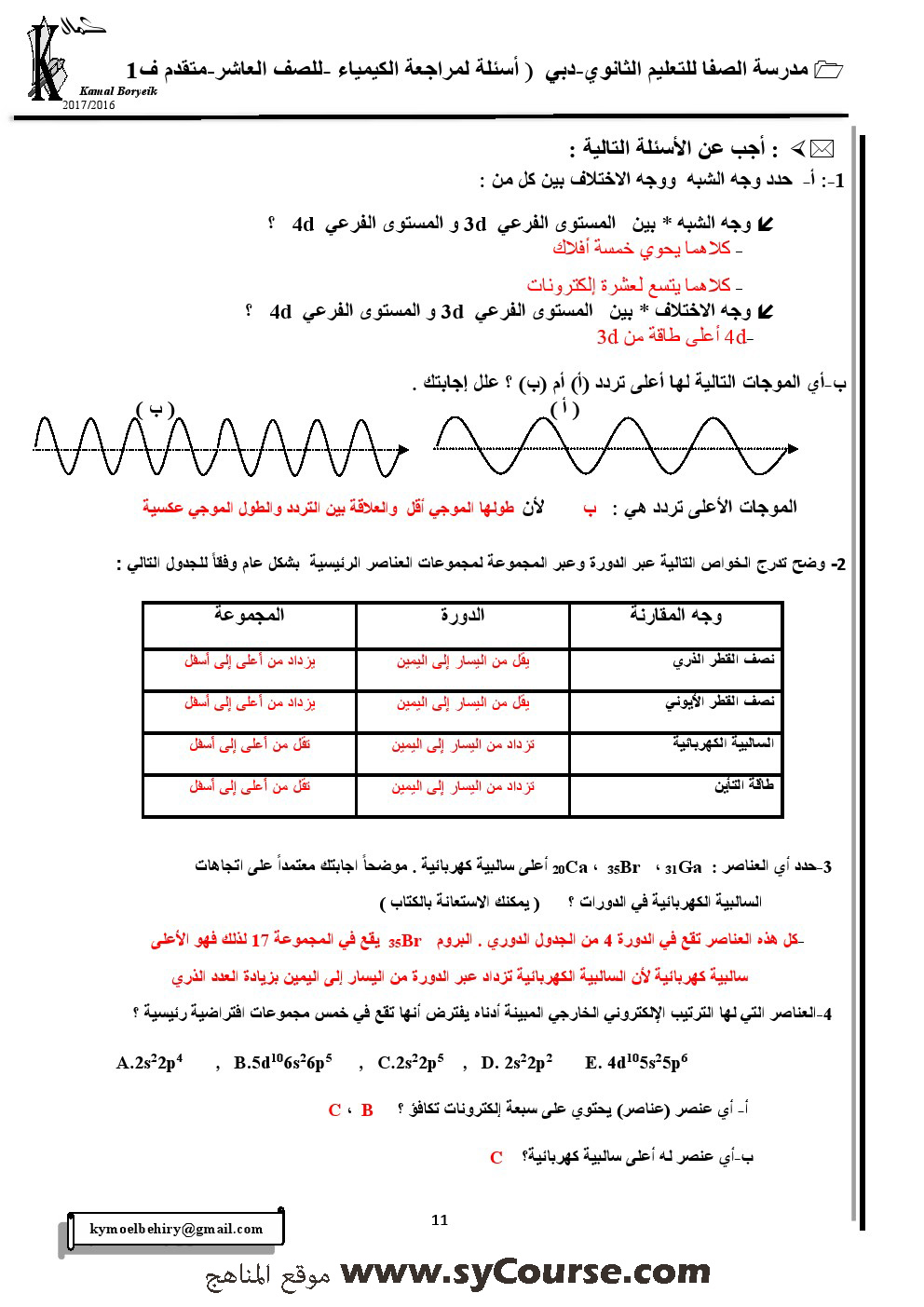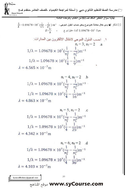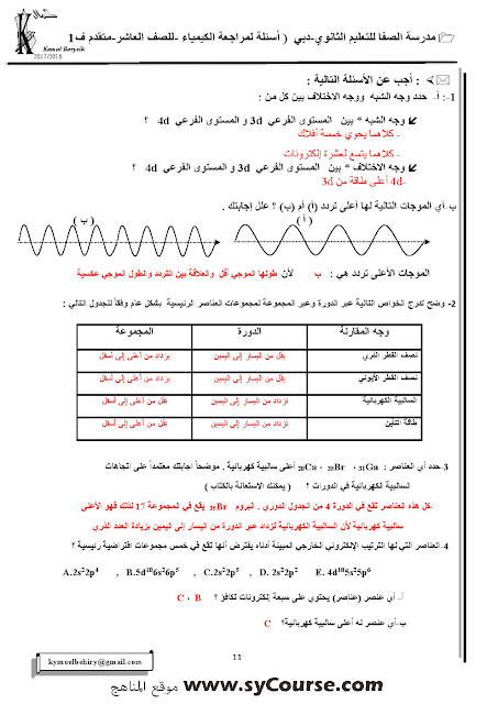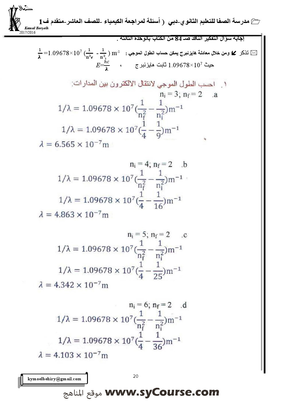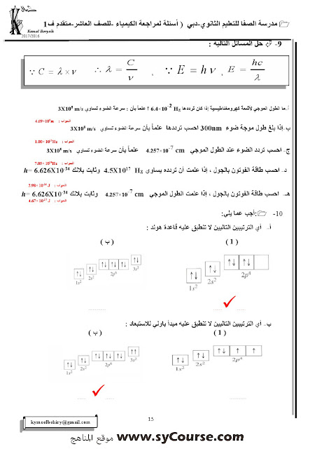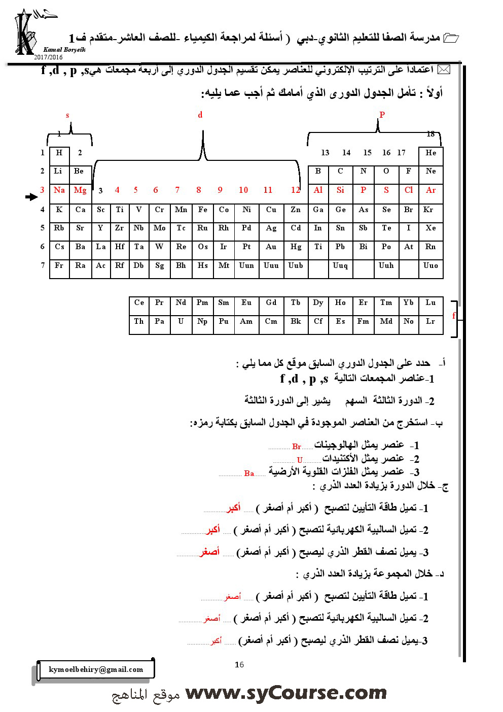 إليكم مراجعة في الكيمياء مع الاجوبة للصف العاشر وفق المنهاج الاماراتي الحديث للعام الدراسي 2016-2017 وهذه المراجعة مكونة من 20 صفحة: بالتوفيق لجميع الطلبة: