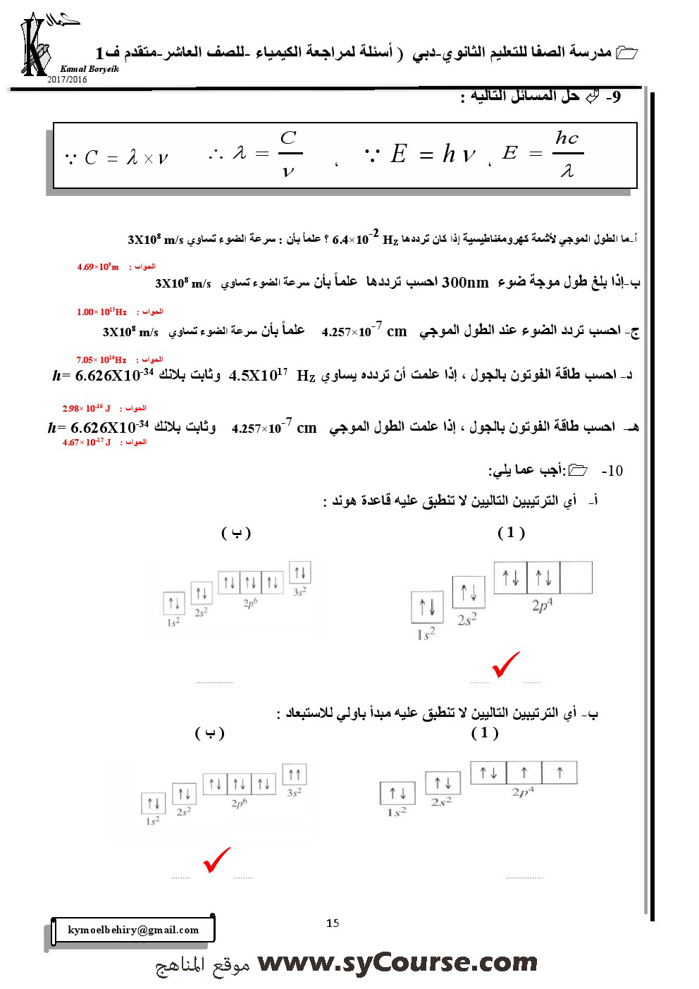 معلومات الملف: الصف العاشر, الفصل الأول, كيمياء, مراجعة نهائية مع الأجوبة -العام الدراسي 2016-2017 | ||