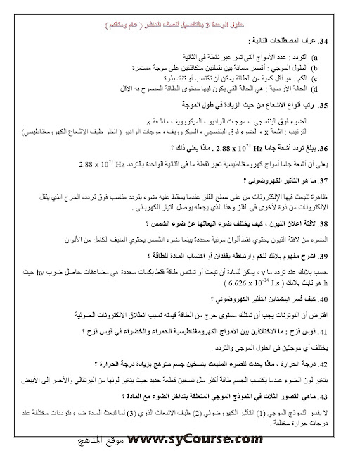 كيمياء حل تفصيلي للوحدة الثالثة مع ملخص | ||