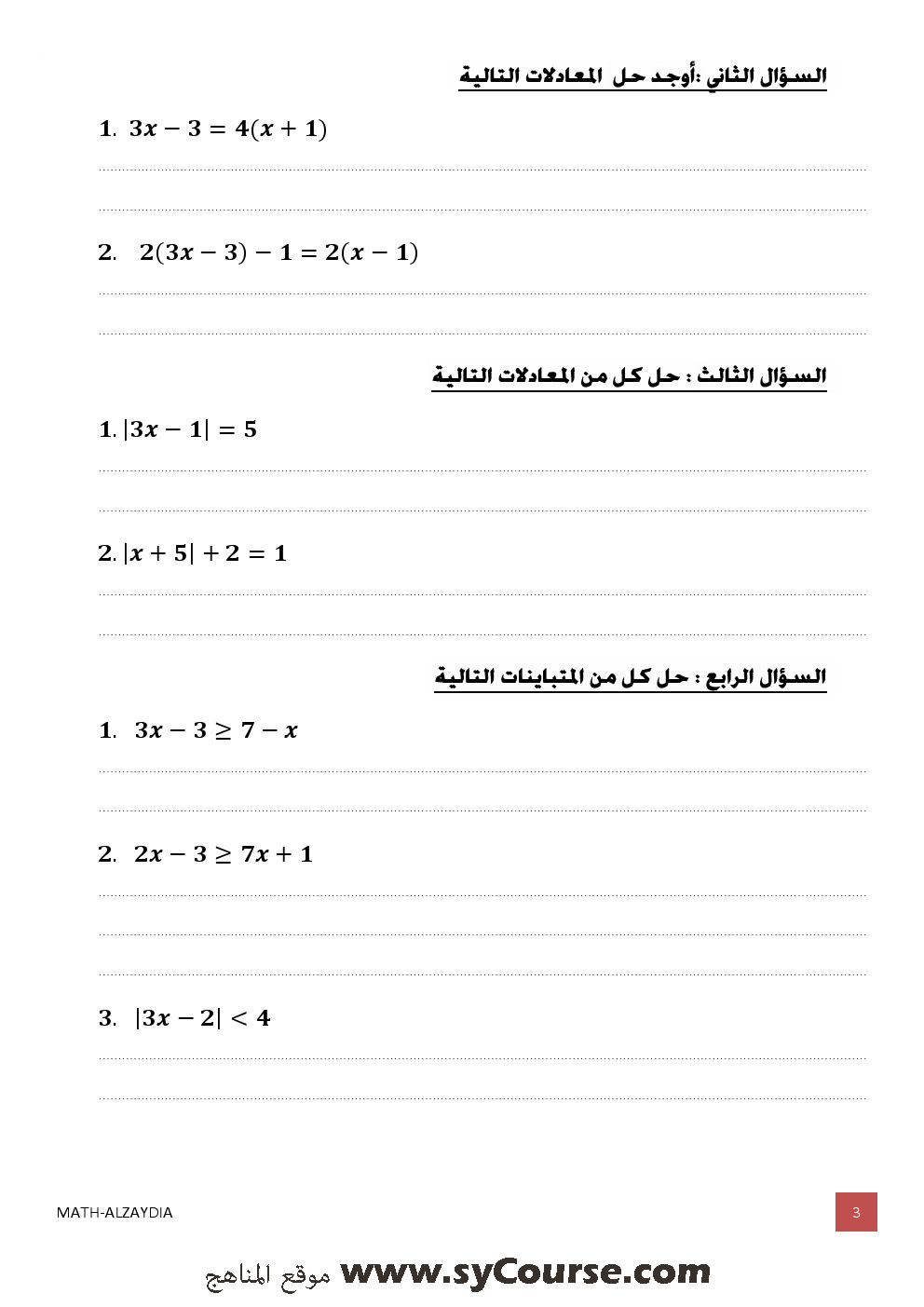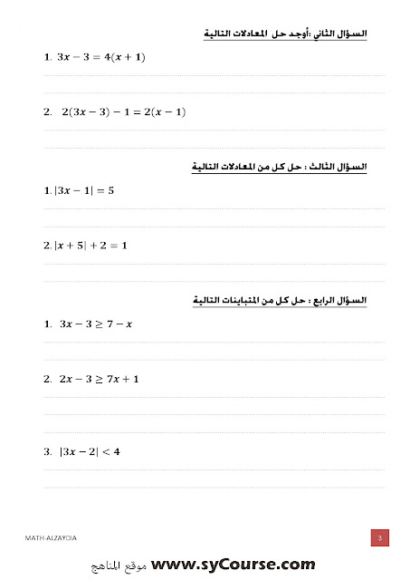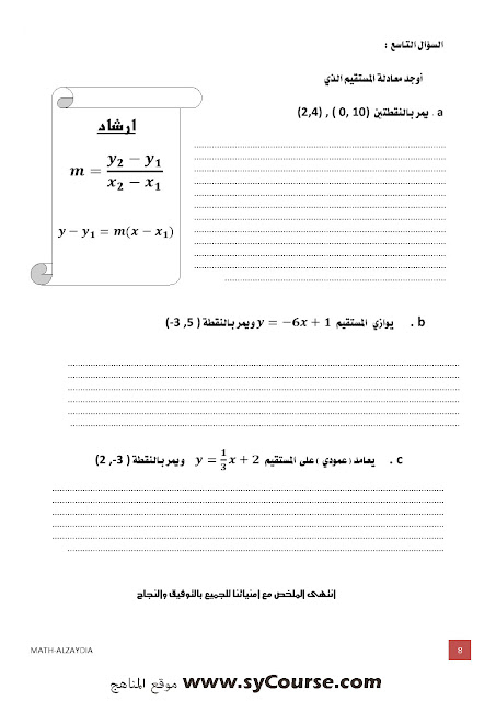 1. أوراق عمل نموذج امتحاني