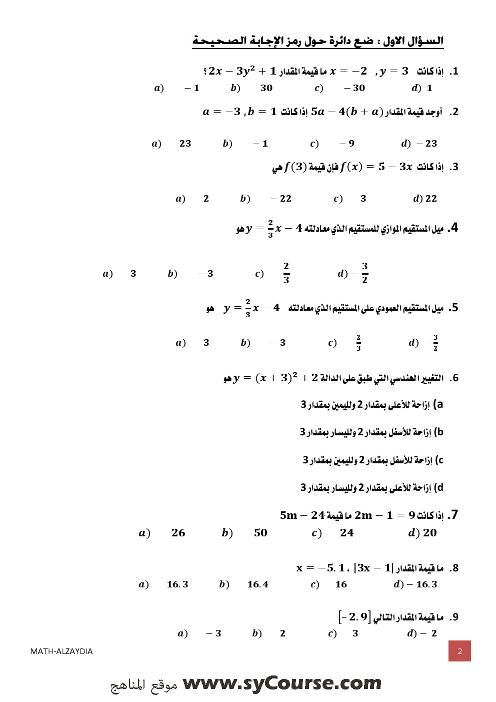 المادة: رياضيات | ||
